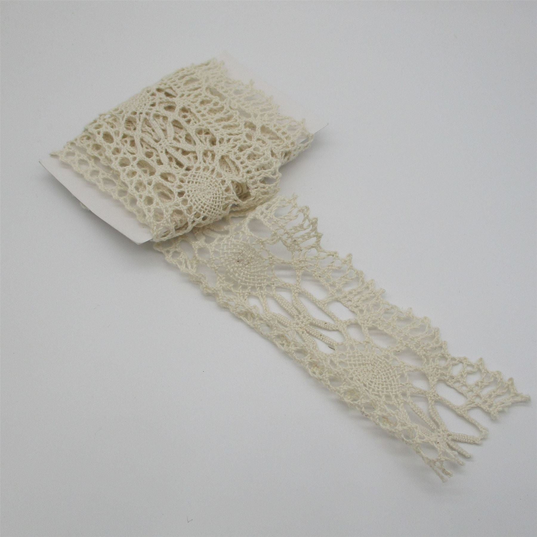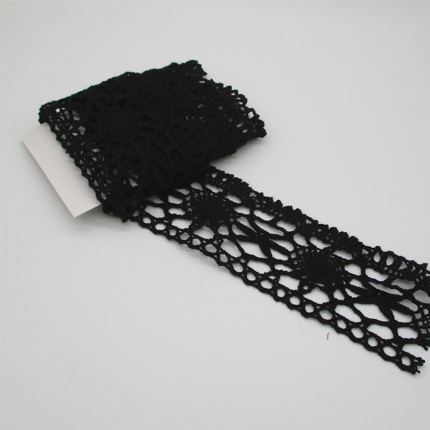 1. Sold by the metre 2. Available in black or ivory. 3. Great for interiors, fashion, costume and craft. This rustic wide cotton lace could add a more natural, bohemian touch to your design. Opt for soft, natural ivory, or bold black.