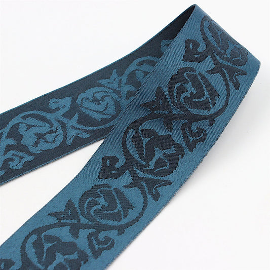 Wide Floral Jacquard Braid Blue Rust 170mm x1m - 6190