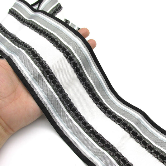 Striped Braid Metallic Chain Ivory Silver 10cm x1m - 9526