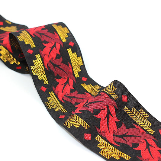 Leaf Vine Jacquard Braid 33mm - Black x 7m 5544