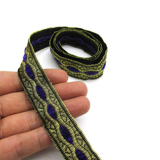 Metallic Braid Chenille Centre Gold Purple 25mm x1m - 8302