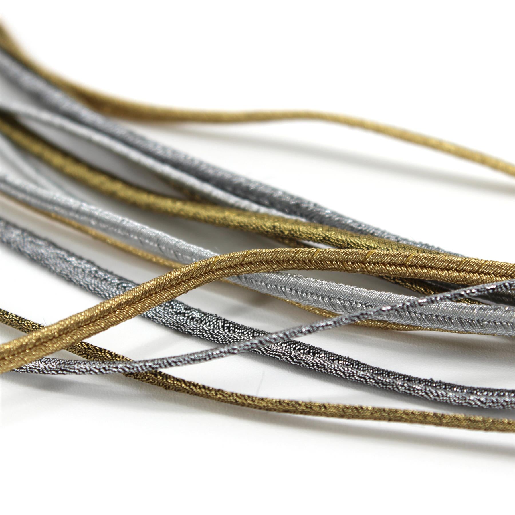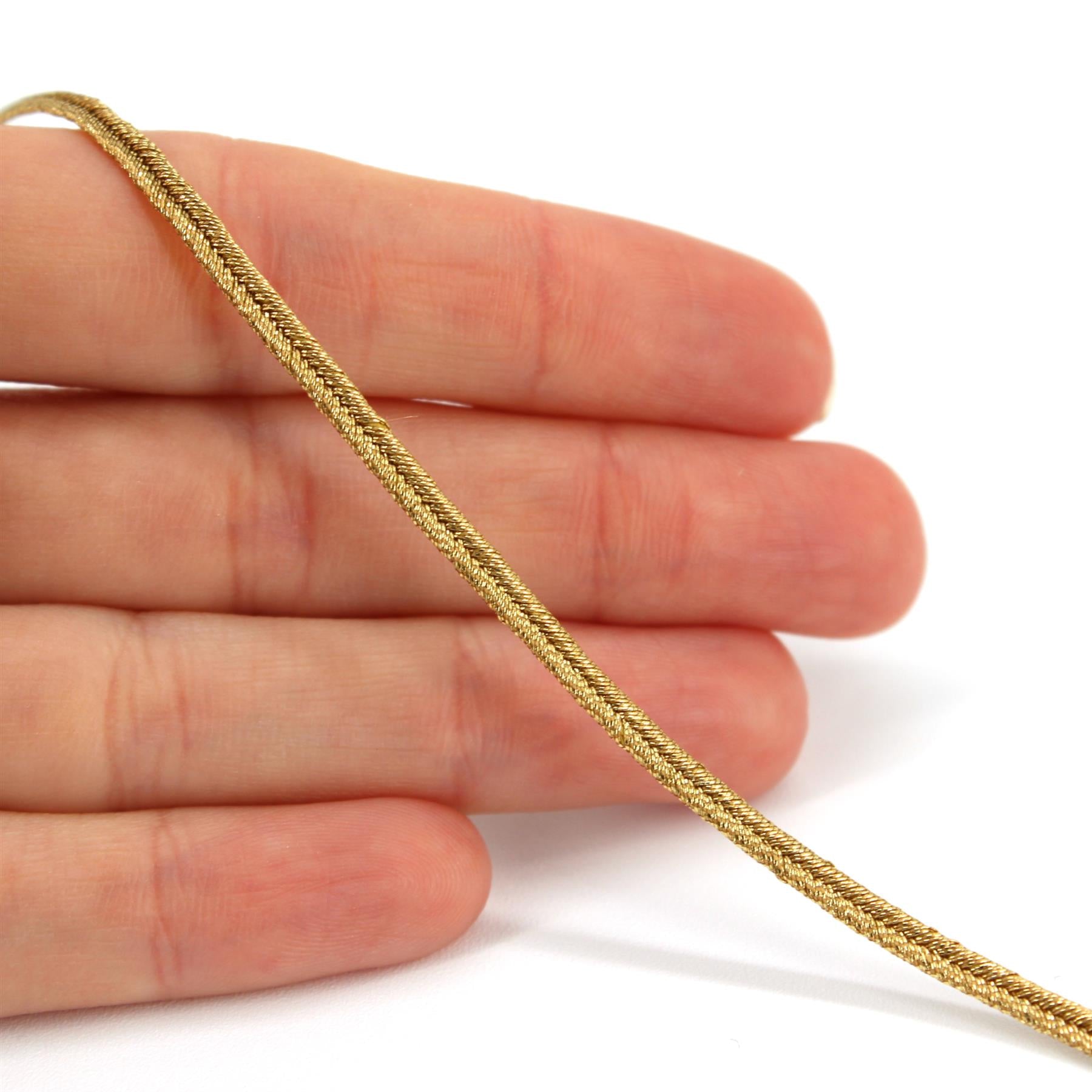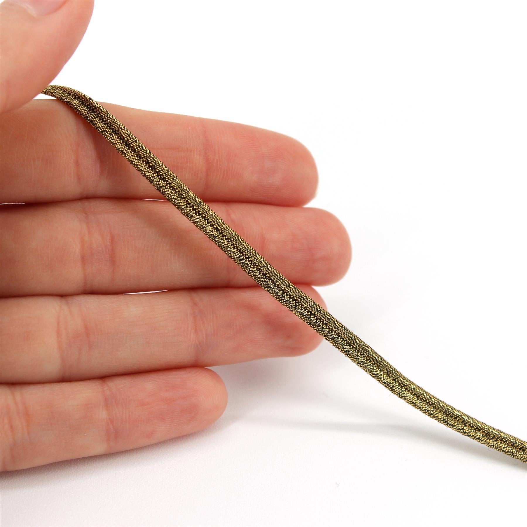 This metallic Russia braid is a timeless staple, perfect for introducing refined accent detail to costume, craft, or interiors projects.