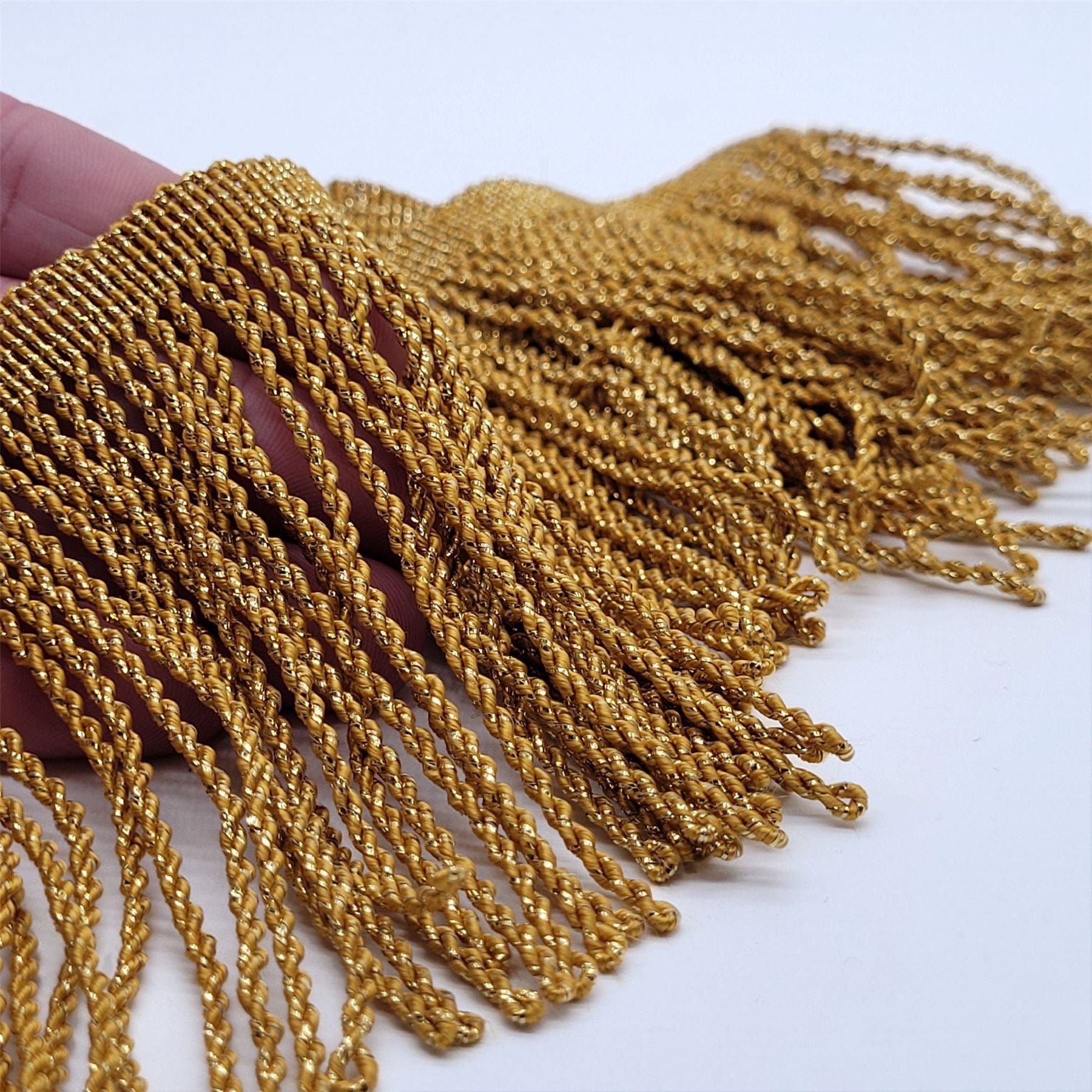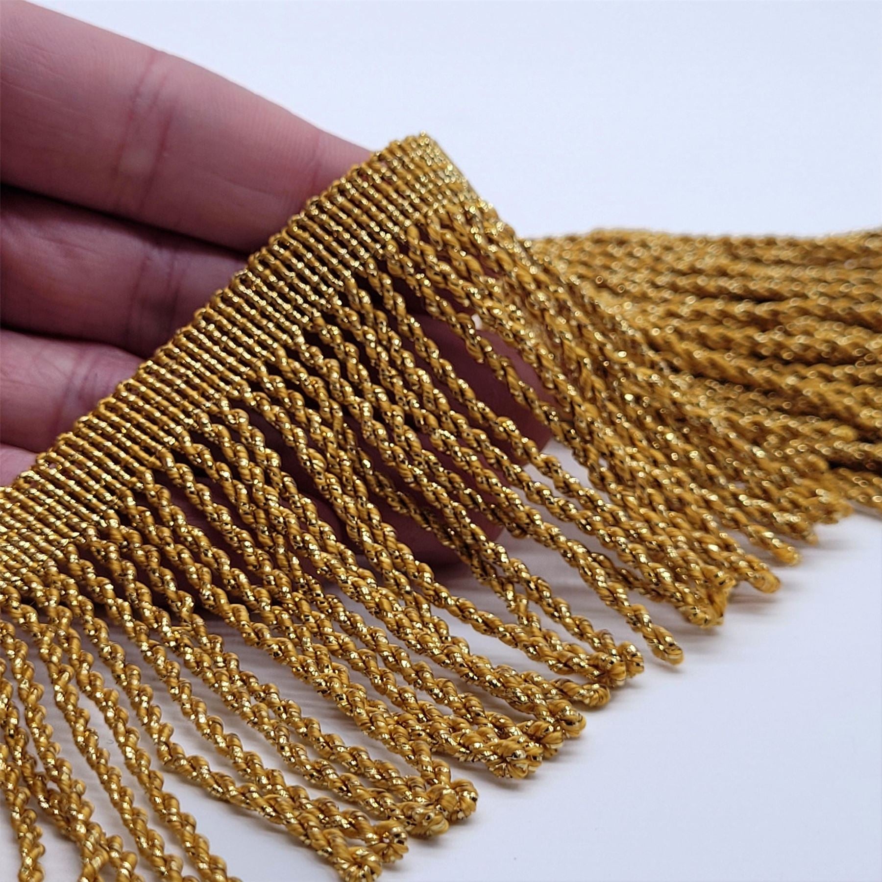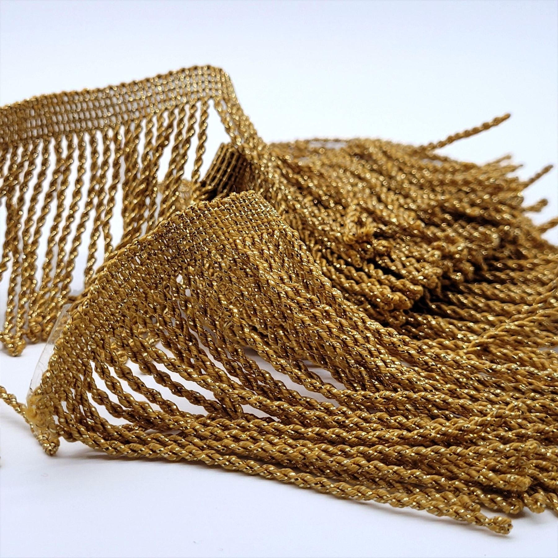 Fine twisted bullion fringe, with metallic lamé strands to catch the light.