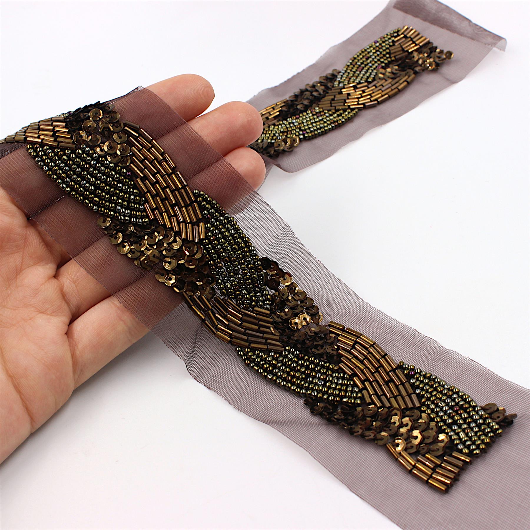 Beaded Motif Plaited Design Brown 34.5cm - 5017