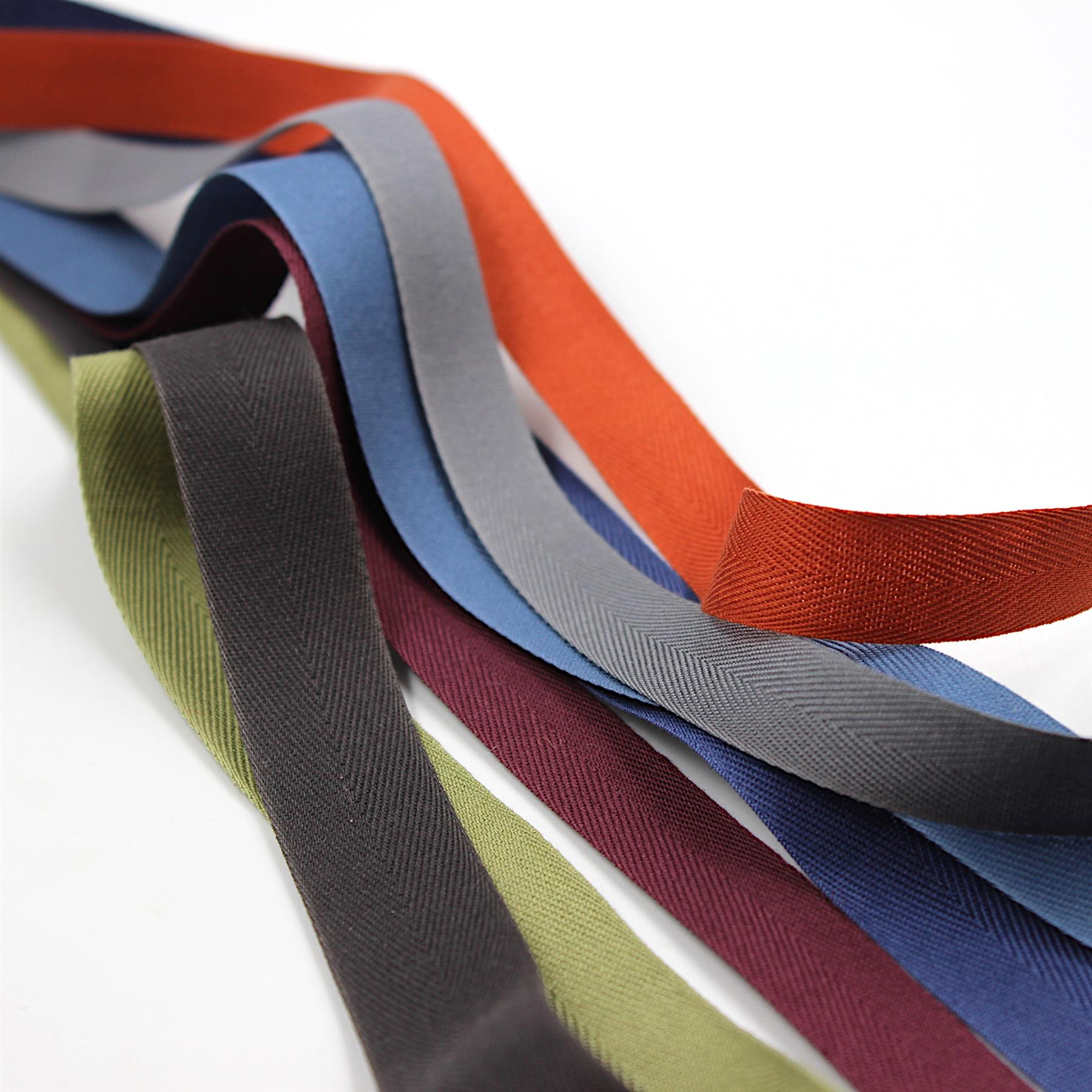 1. Sold as 5 metre lengths. Orders of multiples will be supplied on continuous lengths where possible. 2. French manufactured, beautifully smooth and soft cotton twill, chevron herringbone ribbon. 3. Ideal for finishing clothing, edging and enhancing your creations. 4. Available in a wide range of widths and colours on 20m reels, contact us for details!
