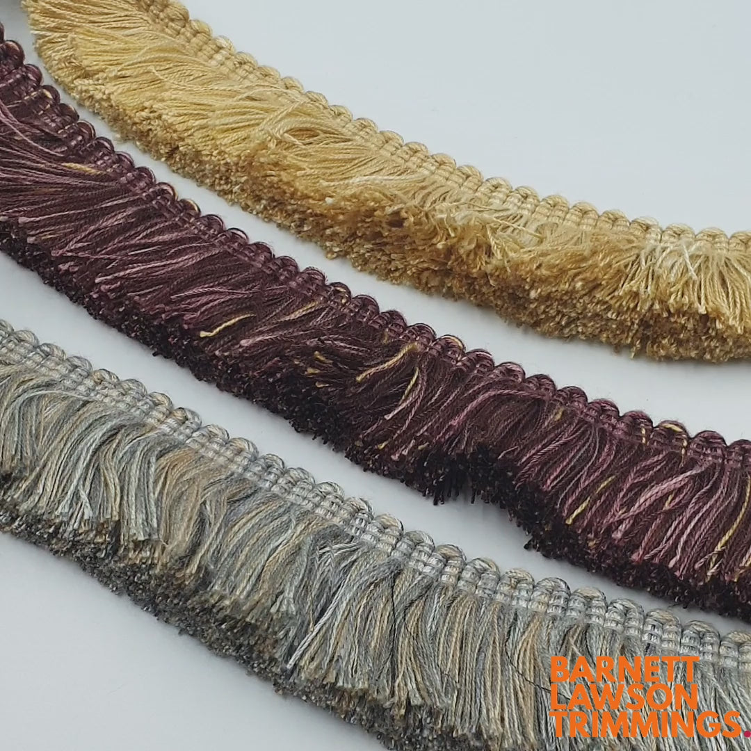 The rayon fibres in this brush fringe have a more silky look, which gives it a more textured and luxurious look and feel.