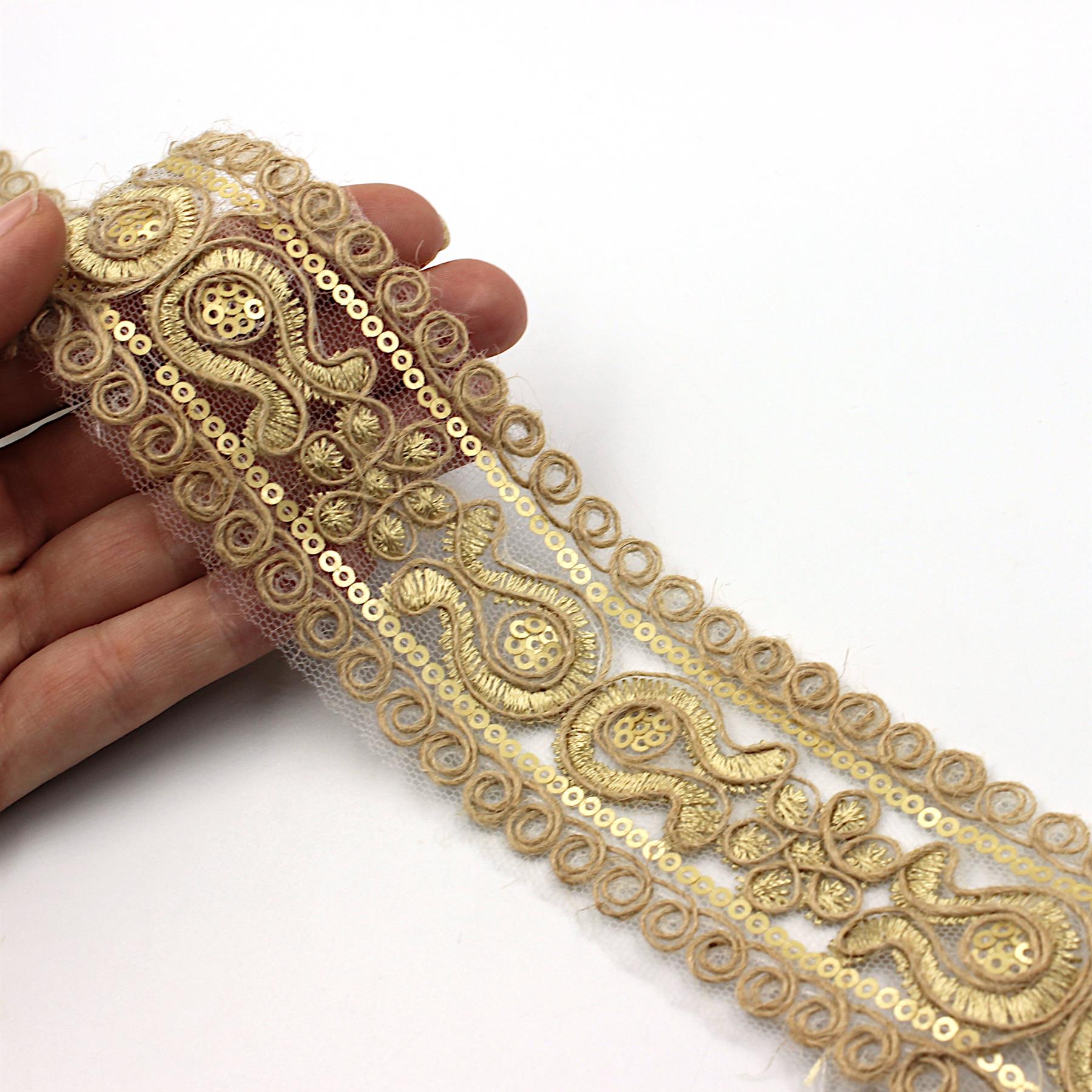 Embroidered Braid With Jute And Sequins 46mm x1m - 5497