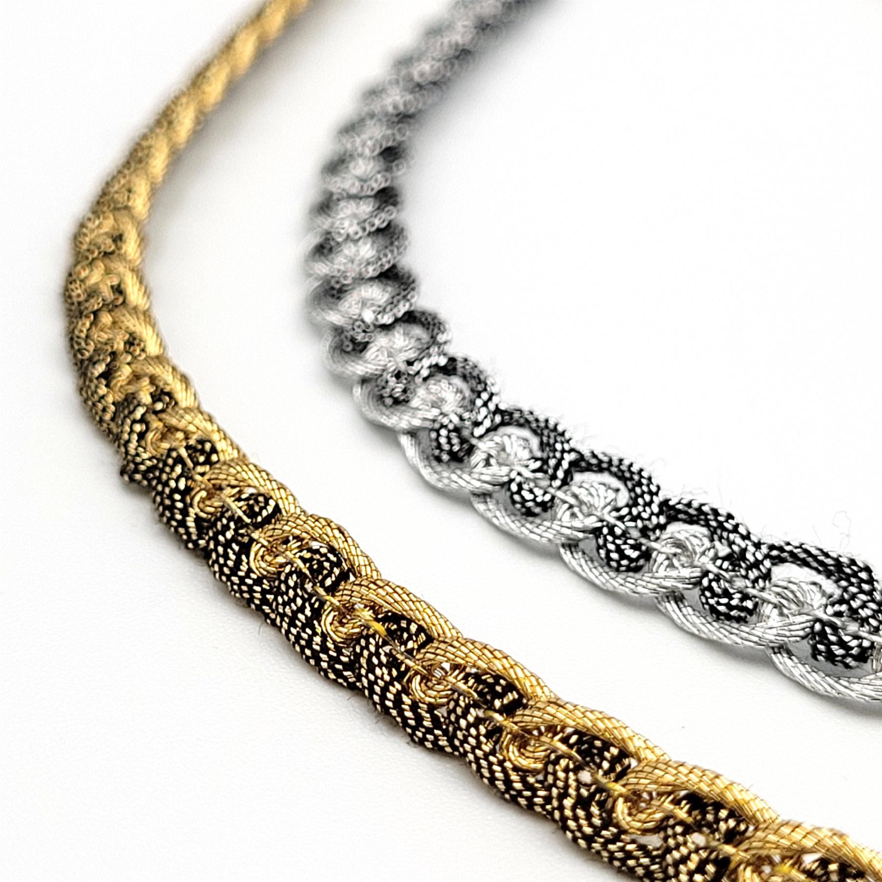 1. Sold by the metre, supplied on continuous lengths where possible. 2. The two-tone colourway creates definition and is sure to help add an intricate detail to your project! 3. Available in two colours - Gold paired with Old Gold, and Silver paired with Old Silver.