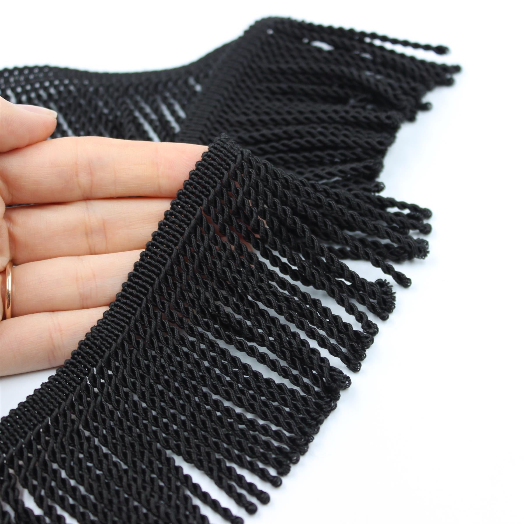 This fine bullion fringe features neat twisted strands with a smooth, silky sheen. Ideal for decorative trimming on upholstery projects, curtain edging, lampshades, costume and theatrical detailing, and decorative craft projects.