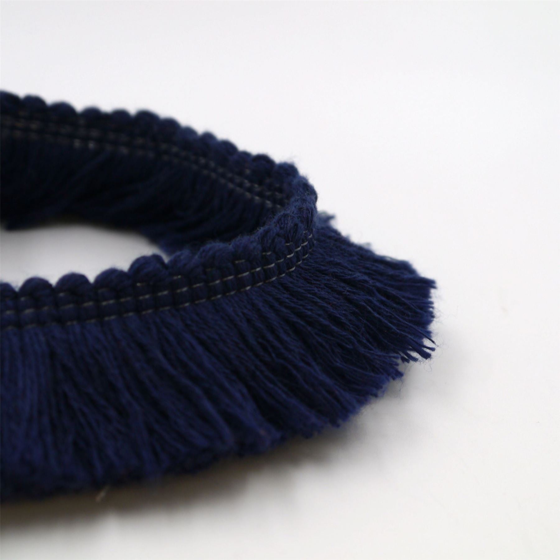 The fibres fan out evenly and hold their shape well, making it a reliable choice for cushion edging, curtains, and soft furnishings with a more grounded, matte look.