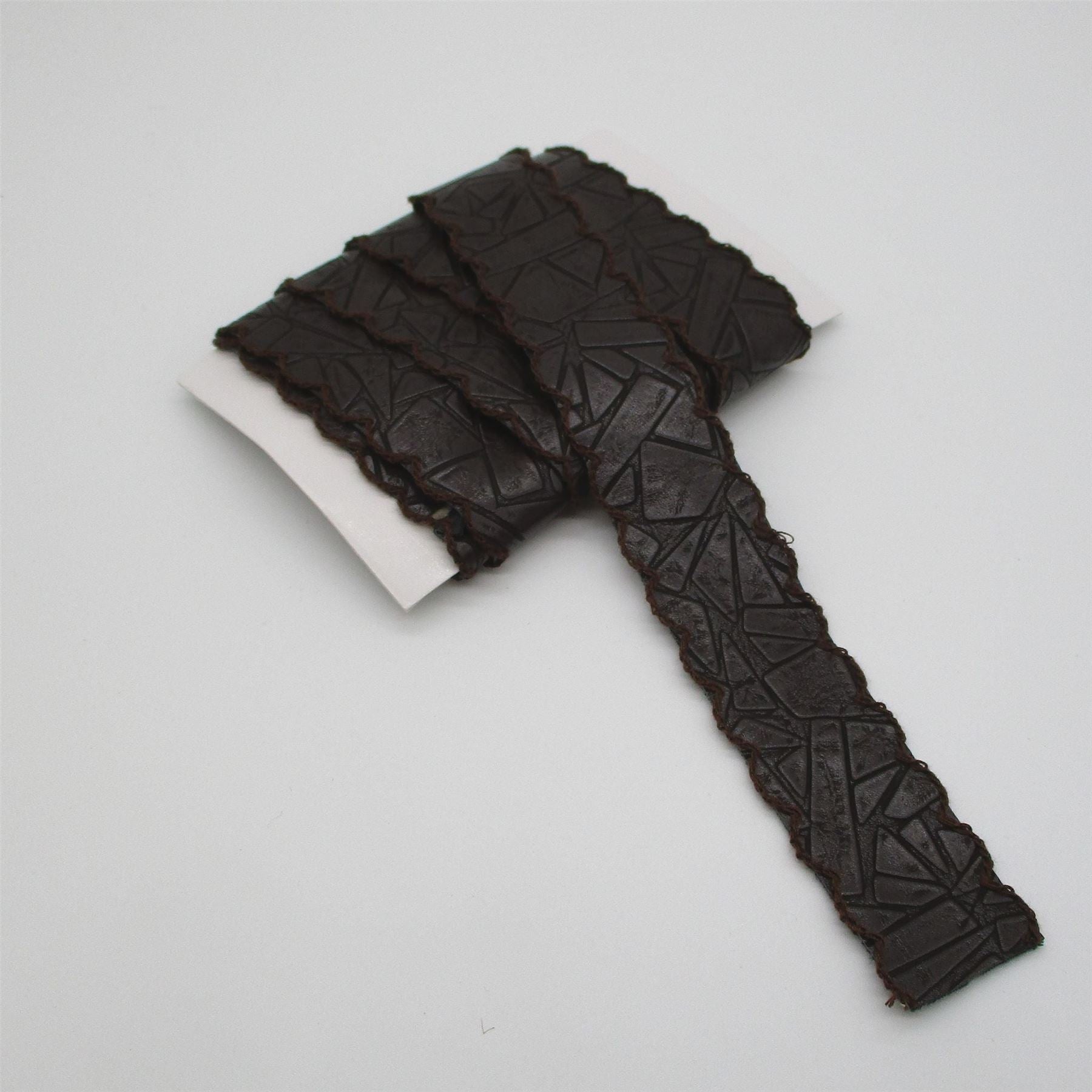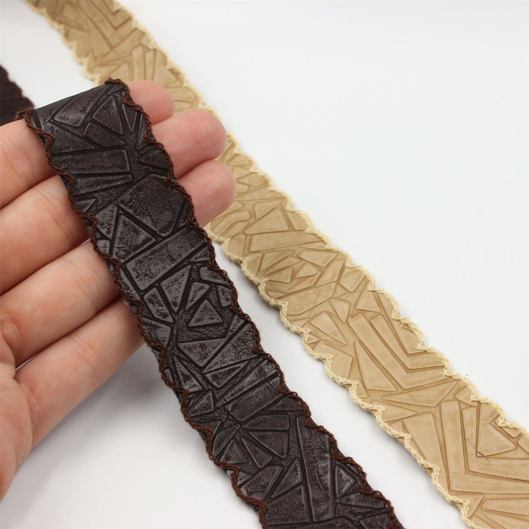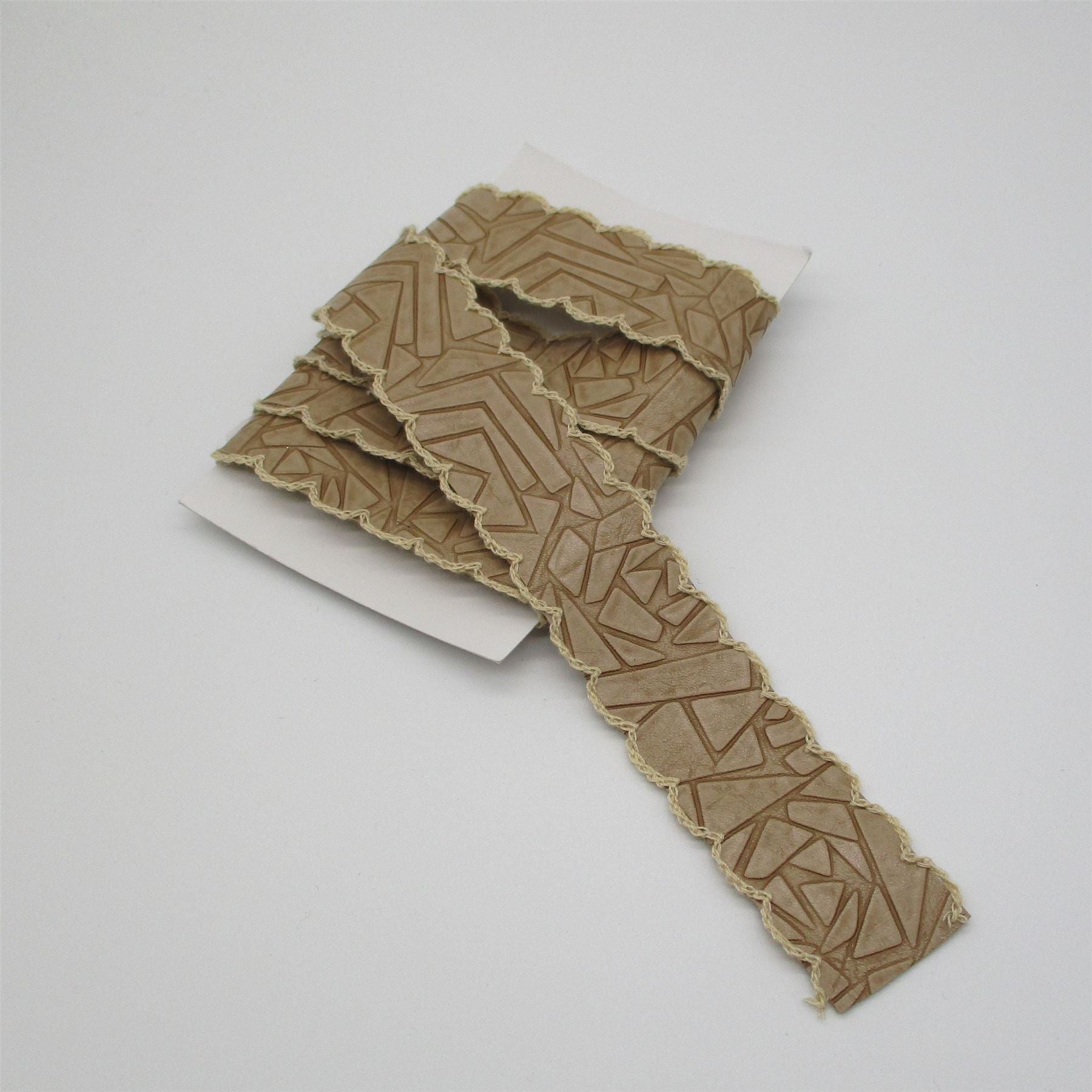 1. Sold by the metre 2. Available in brown or tan. 3. Great for interiors, fashion, costume and craft. This unusual textured braid has a faux-leather feel, and combines this with embossed texture and scalloped edges. The finished edges add a further level of interest, making this braid truly exciting.