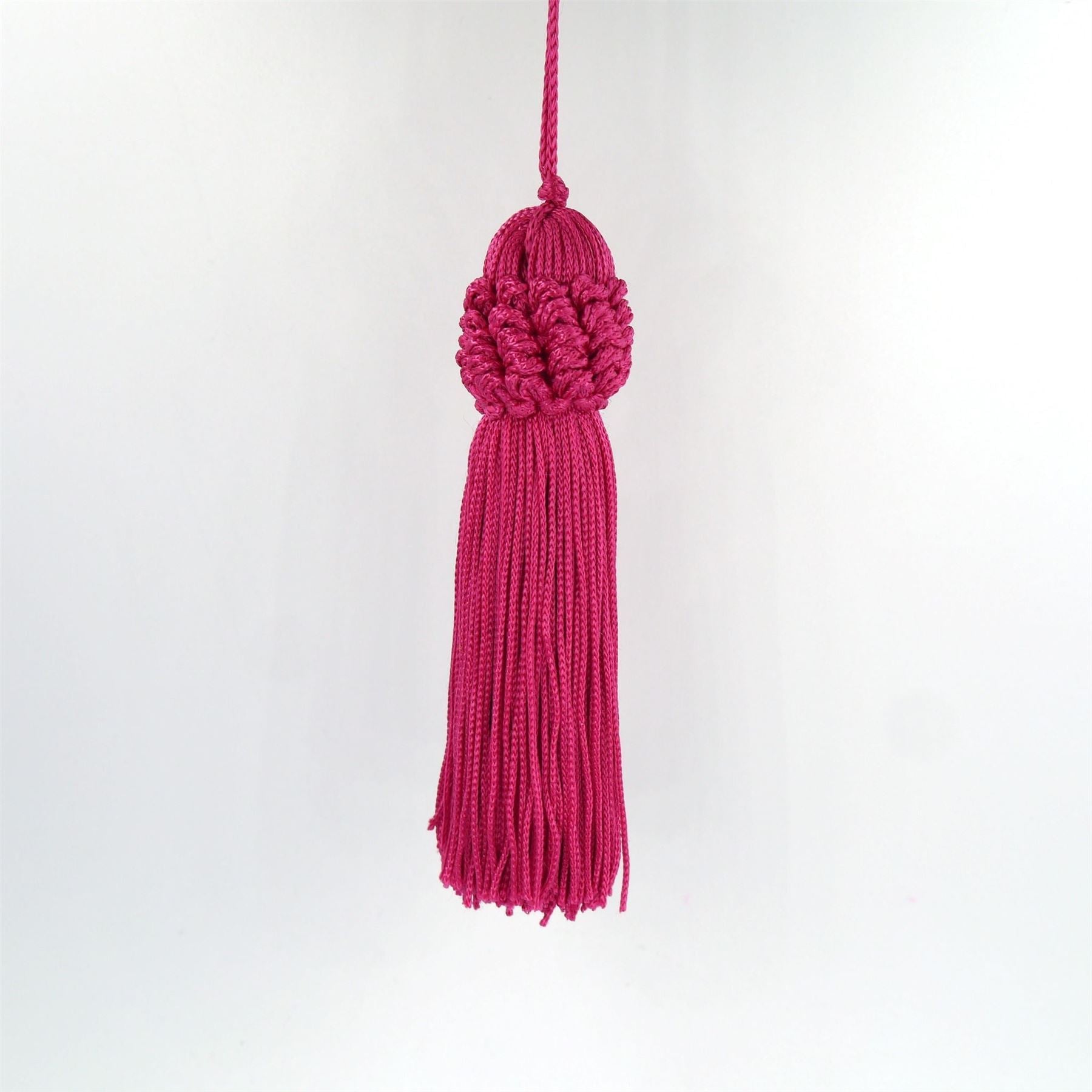 Sold individually. Available in a variety of colours Perfect for interiors, fashion and accessories. These chunky ruffle-top tassels are ideal for playful and refined projects alike. Team a the hot pink tassel with a lime green purse and you've got a funky and fun combination. Alternatively, add the gold coloured tassel to a rich navy velvet cushion, and you've got luxury personified.
