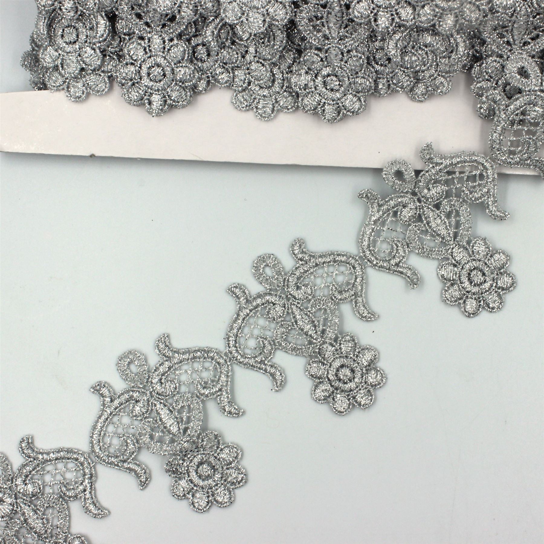 Floral Guipure Lace Silver 65mm x1m - 6568
