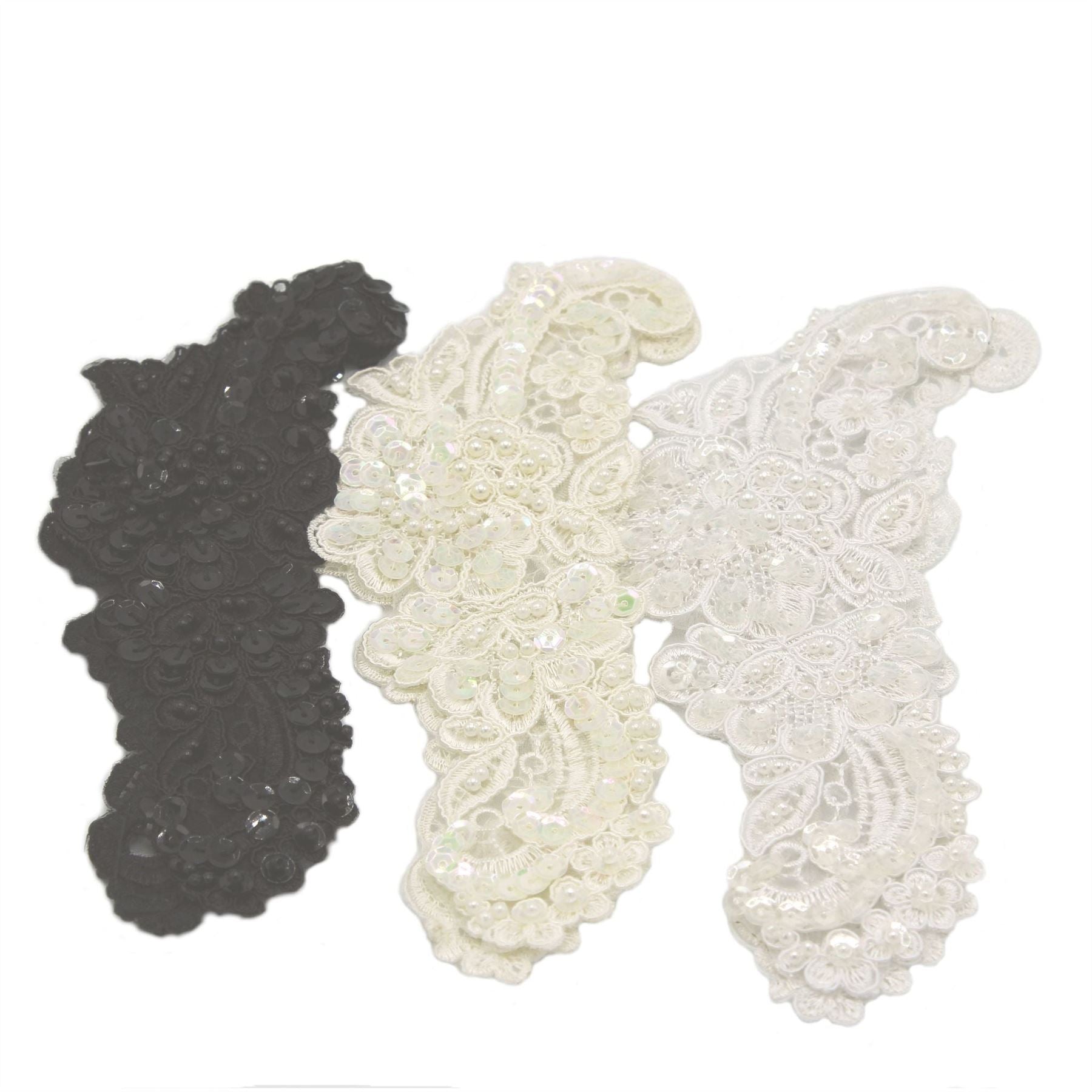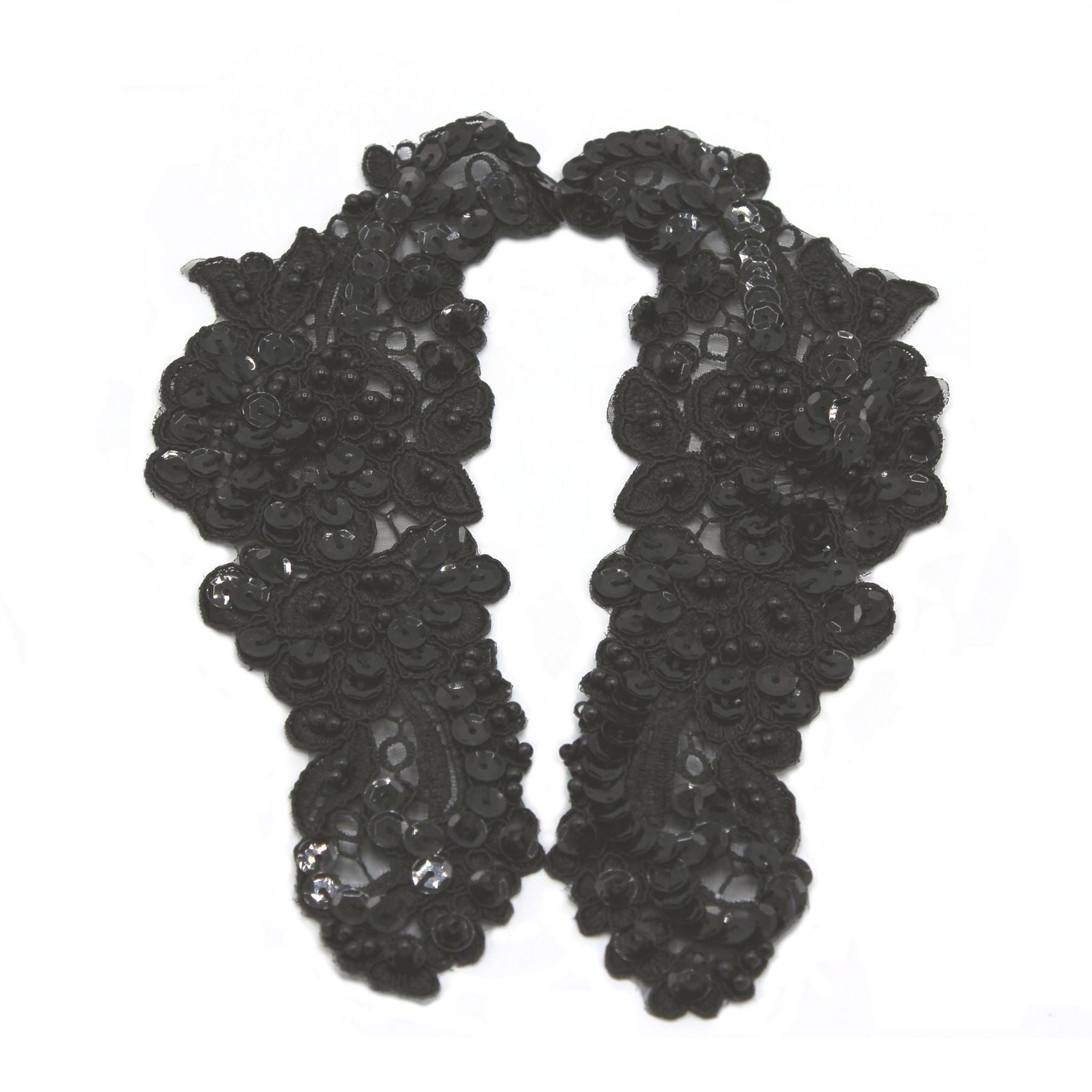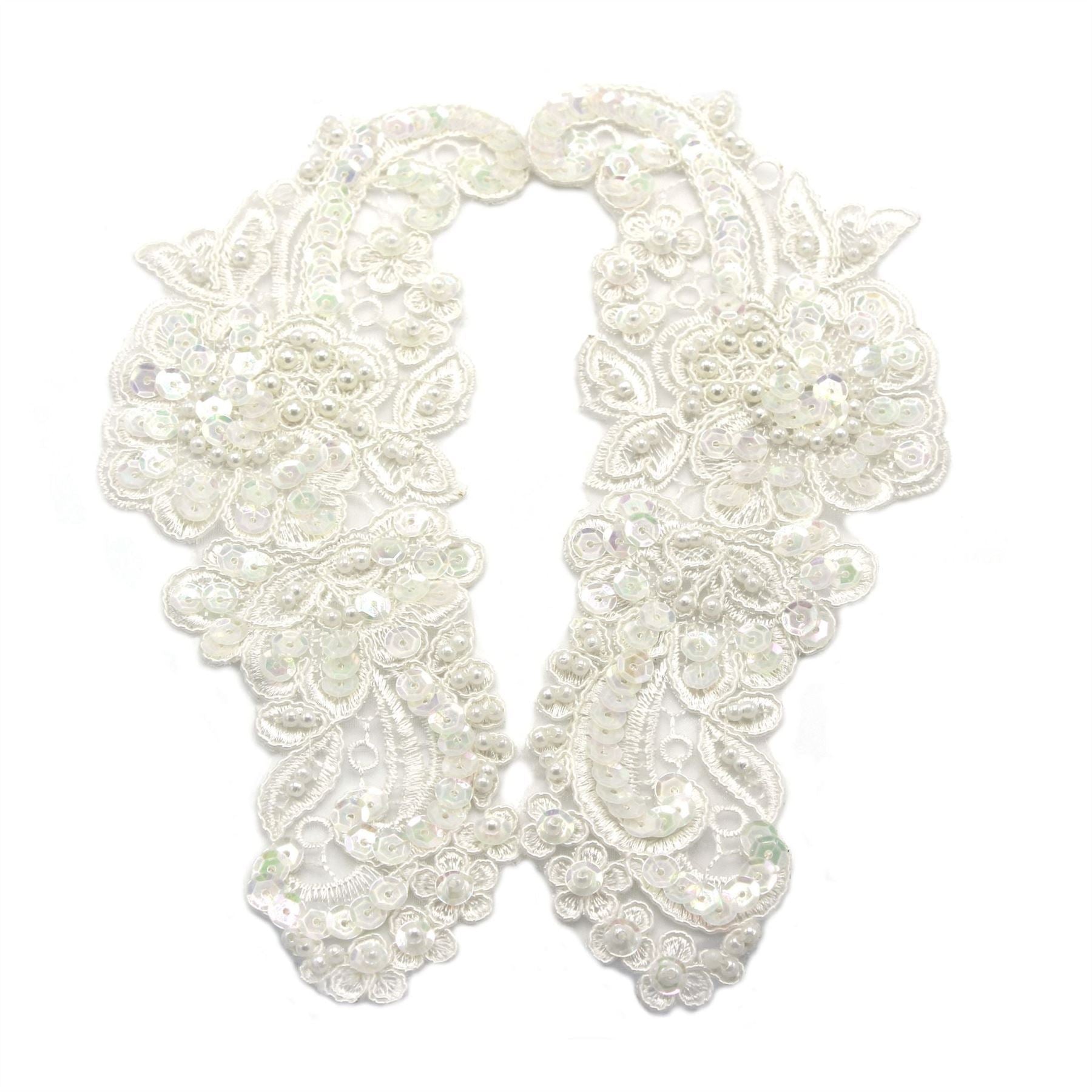 1. Pair of lovely abstract flower design lace appliques with pearl beads and sequins, ideal for use on costumes.