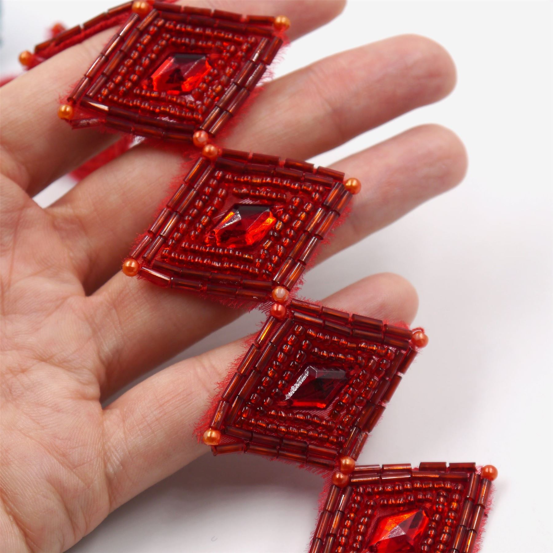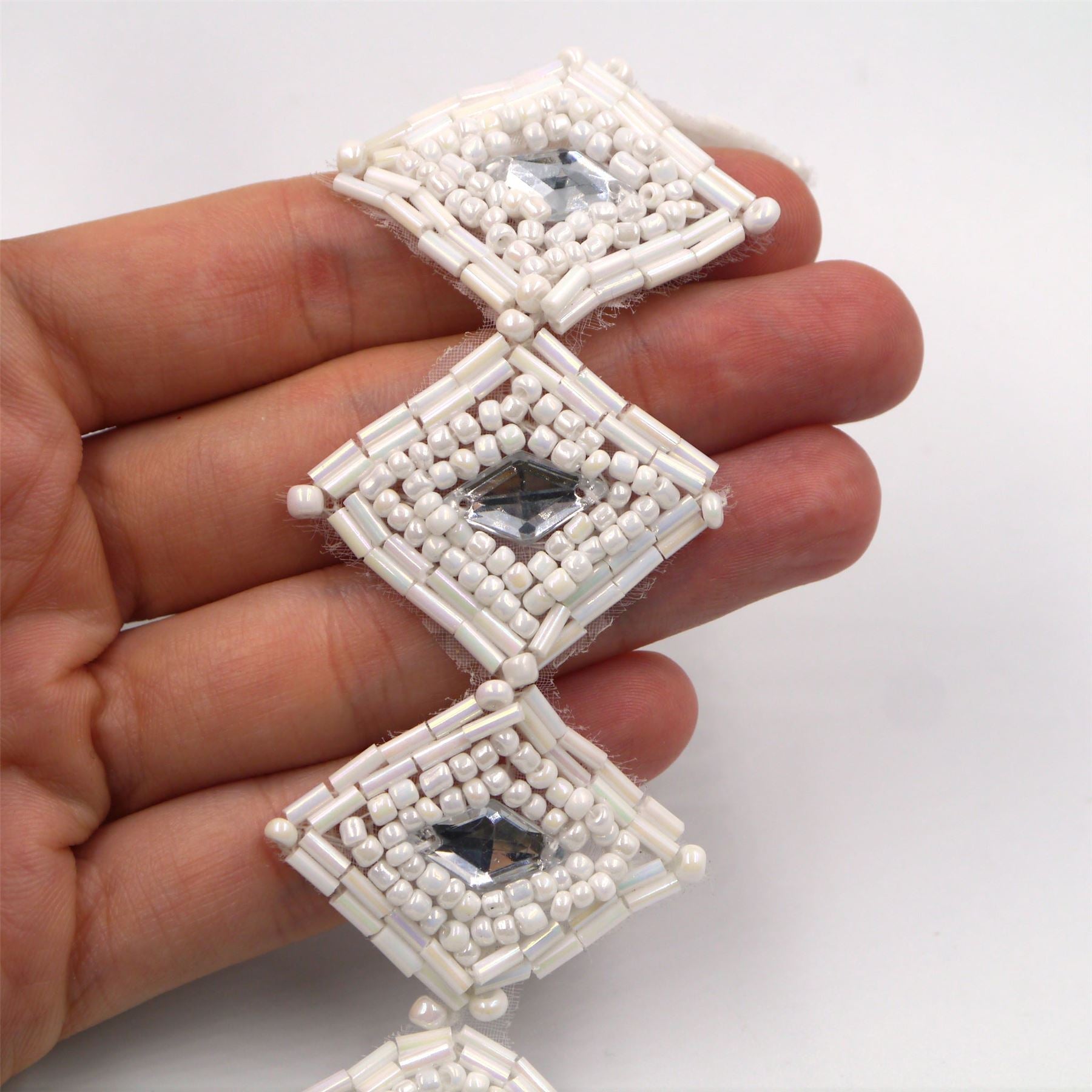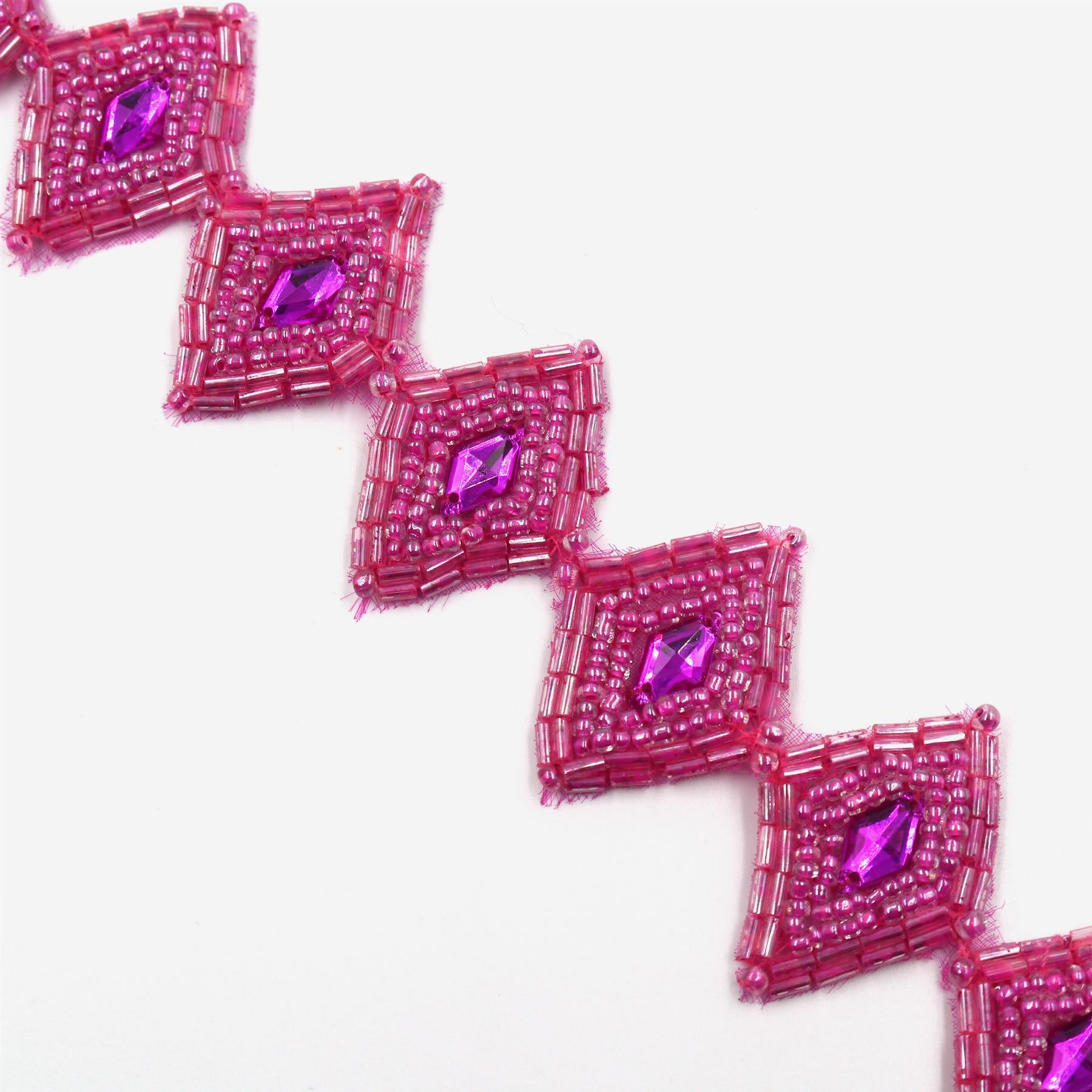 Diamond Pattern Stones and Beads Braid x1m - 7468