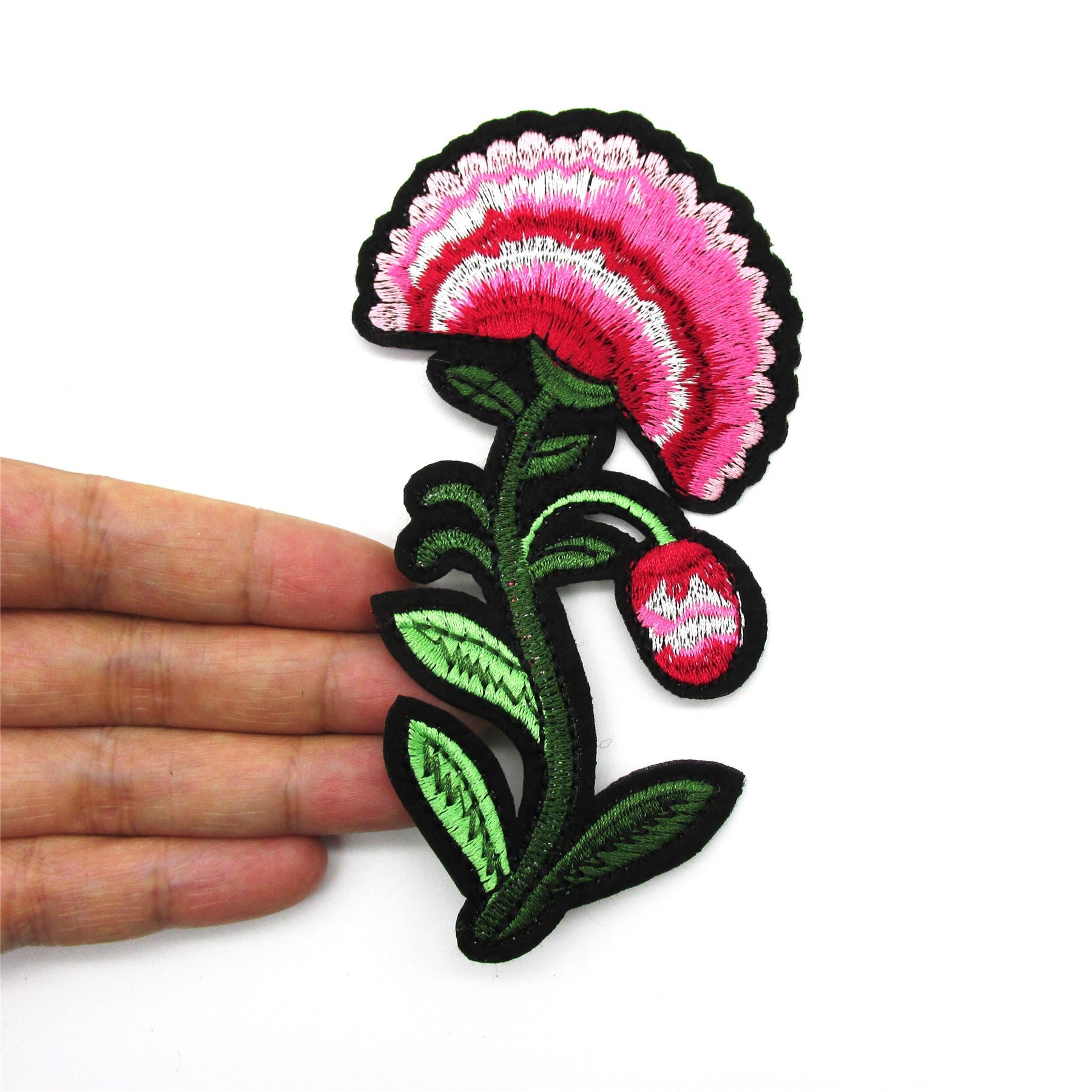 Embroidered Iron On Carnation Motif Pink 7x12cm - 7565