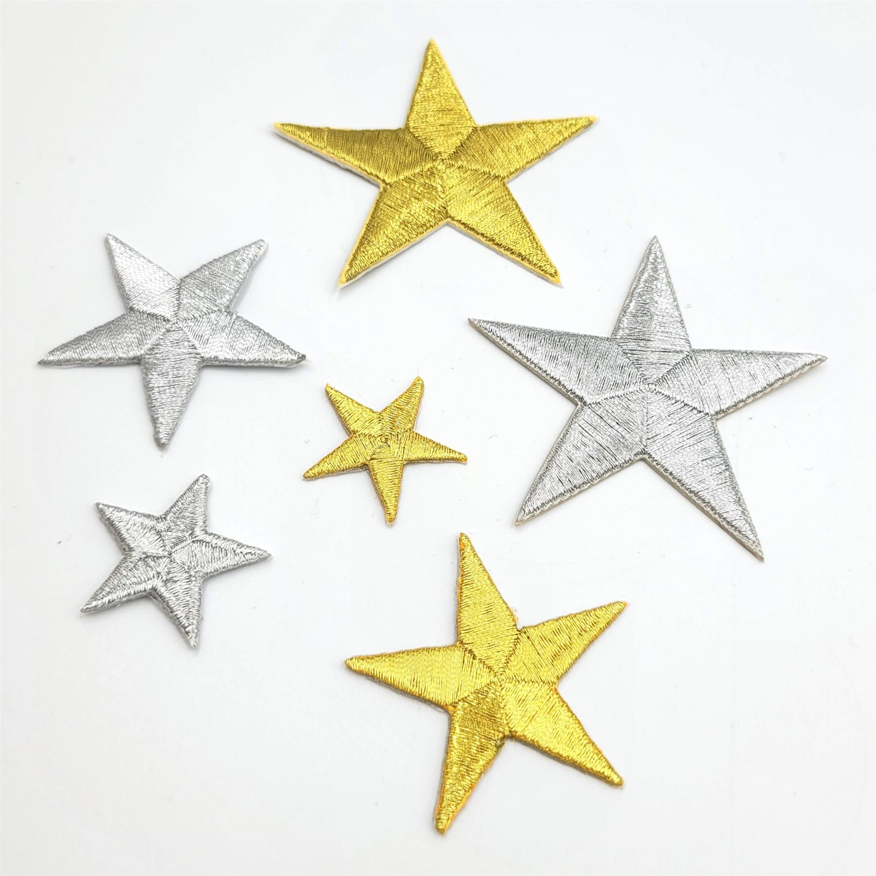 Iron-on star motifs available in a range of sizes, in either Gold or Silver.