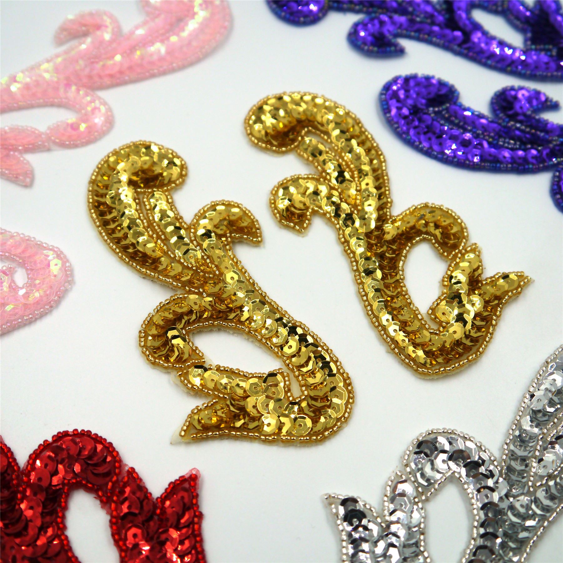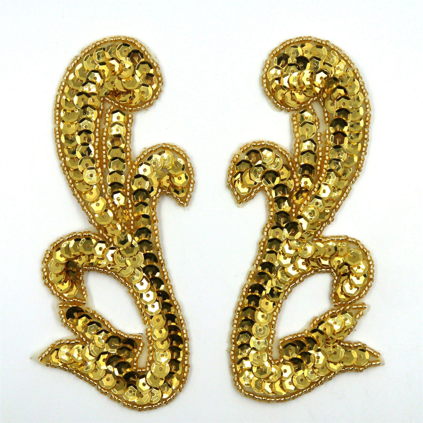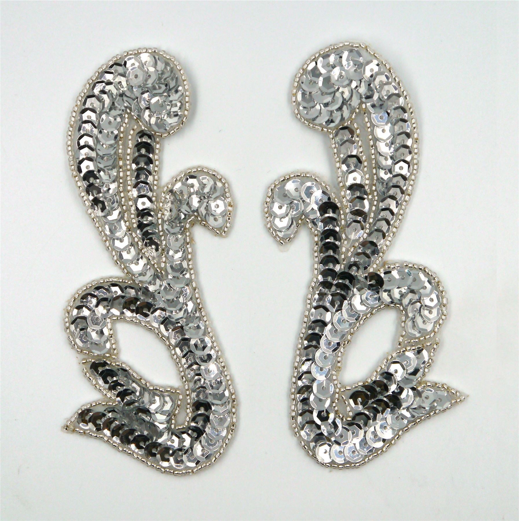 Long Pair Of Abstract Shape Sequin Motifs 13cm 7719
