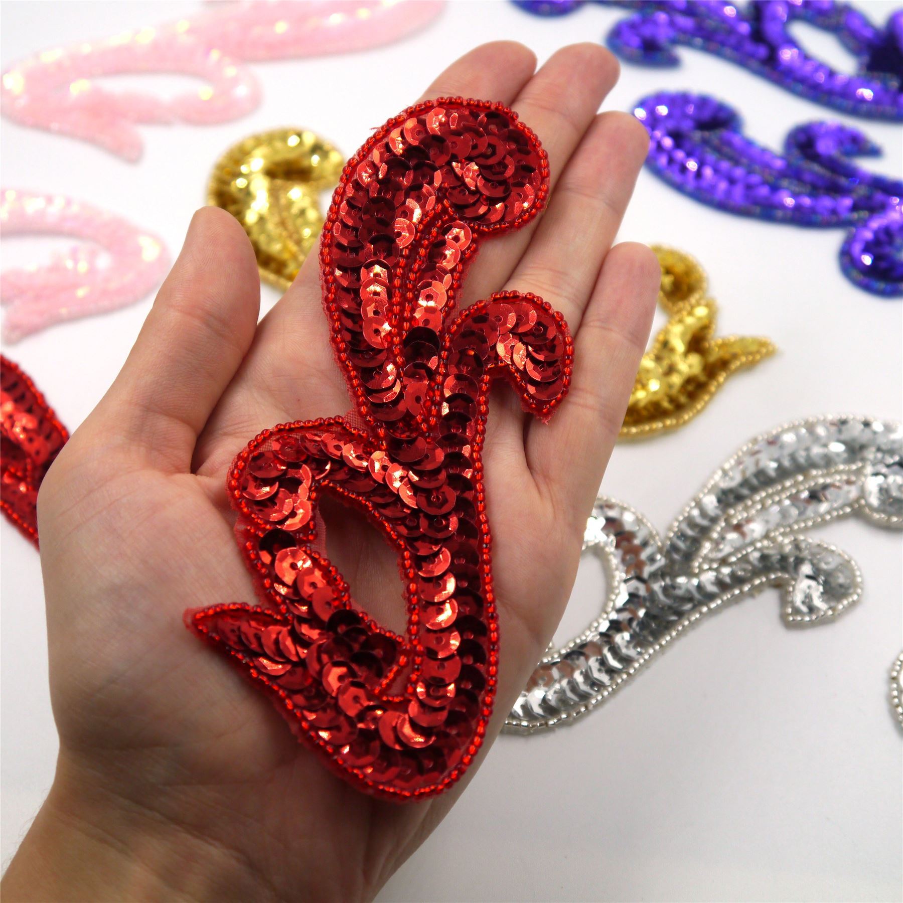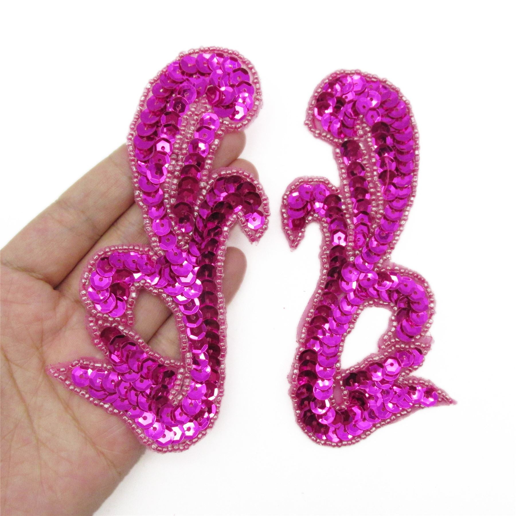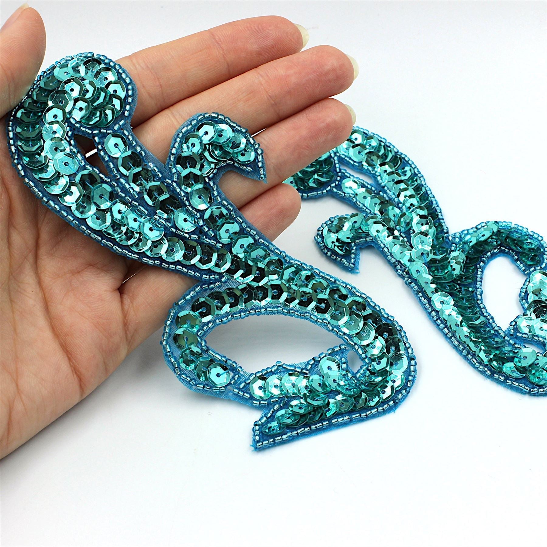 Long Pair Of Abstract Shape Sequin Motifs 13cm 7719