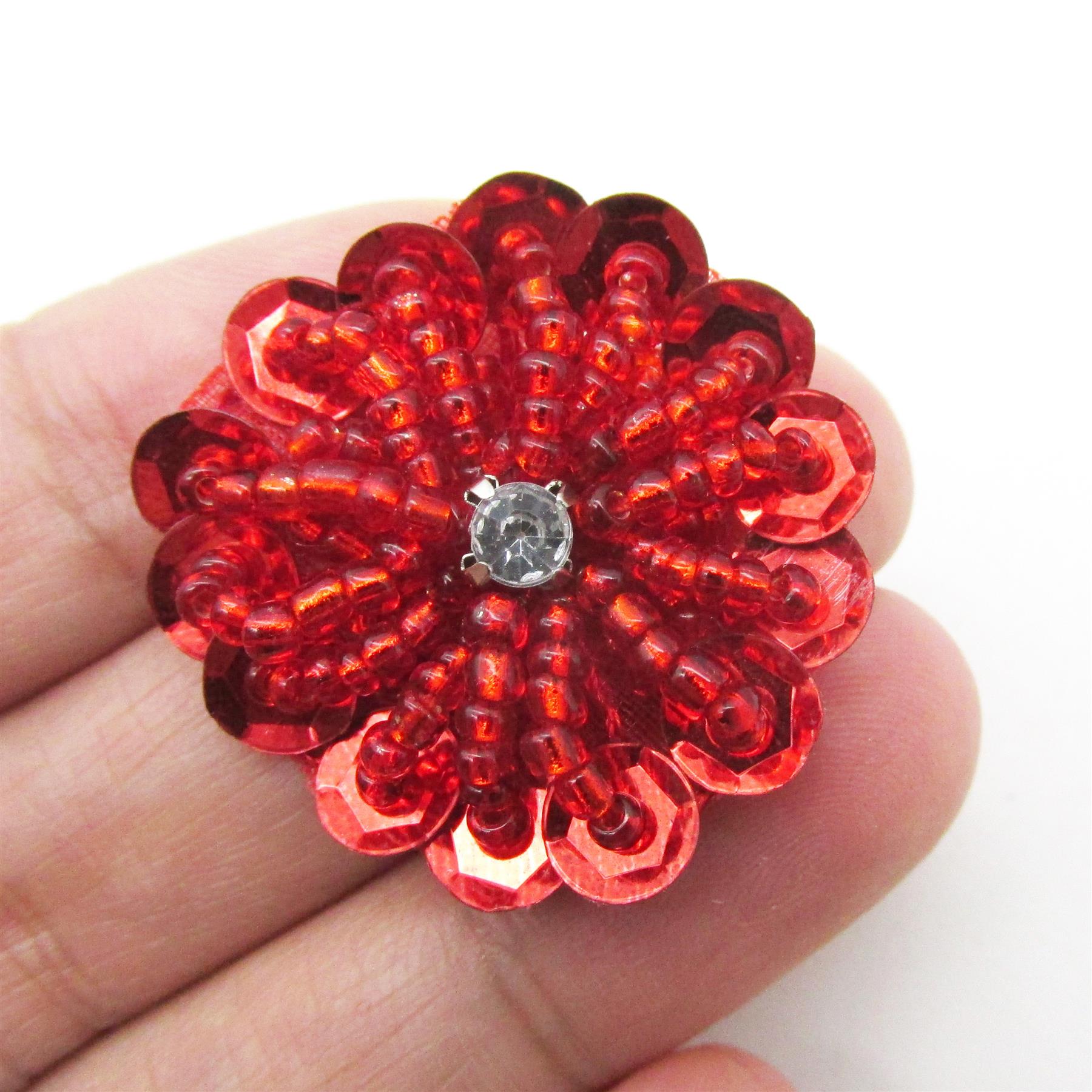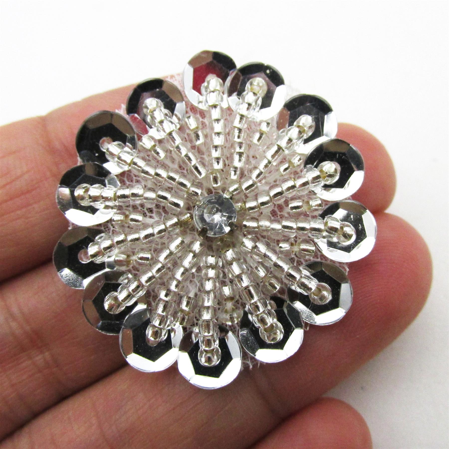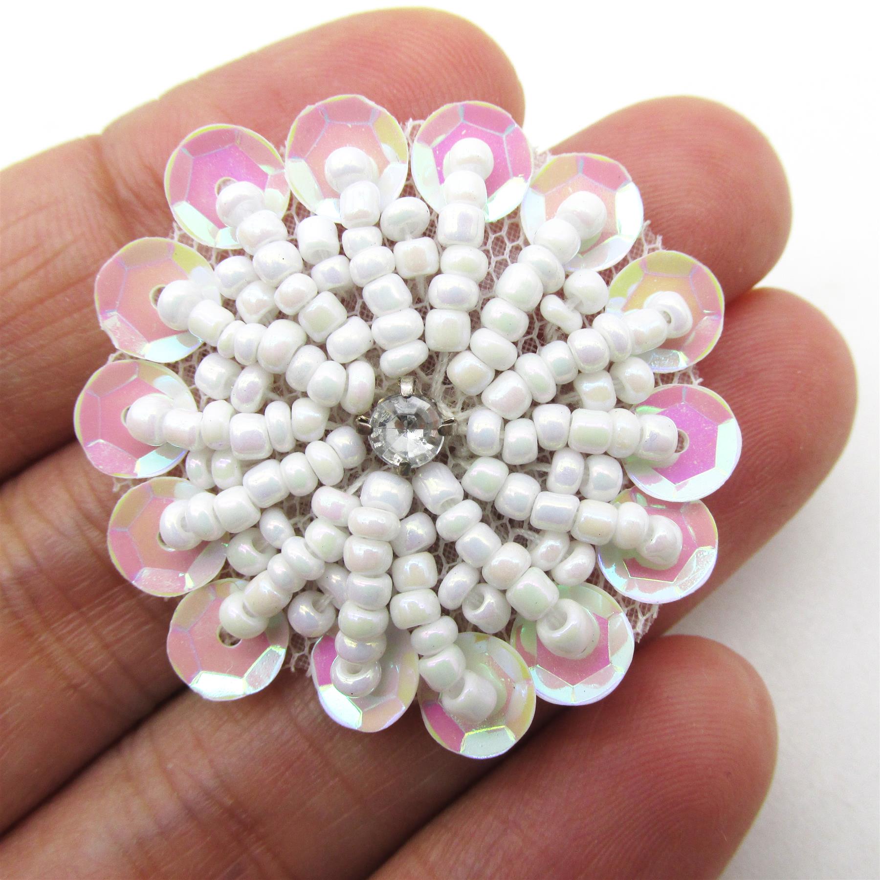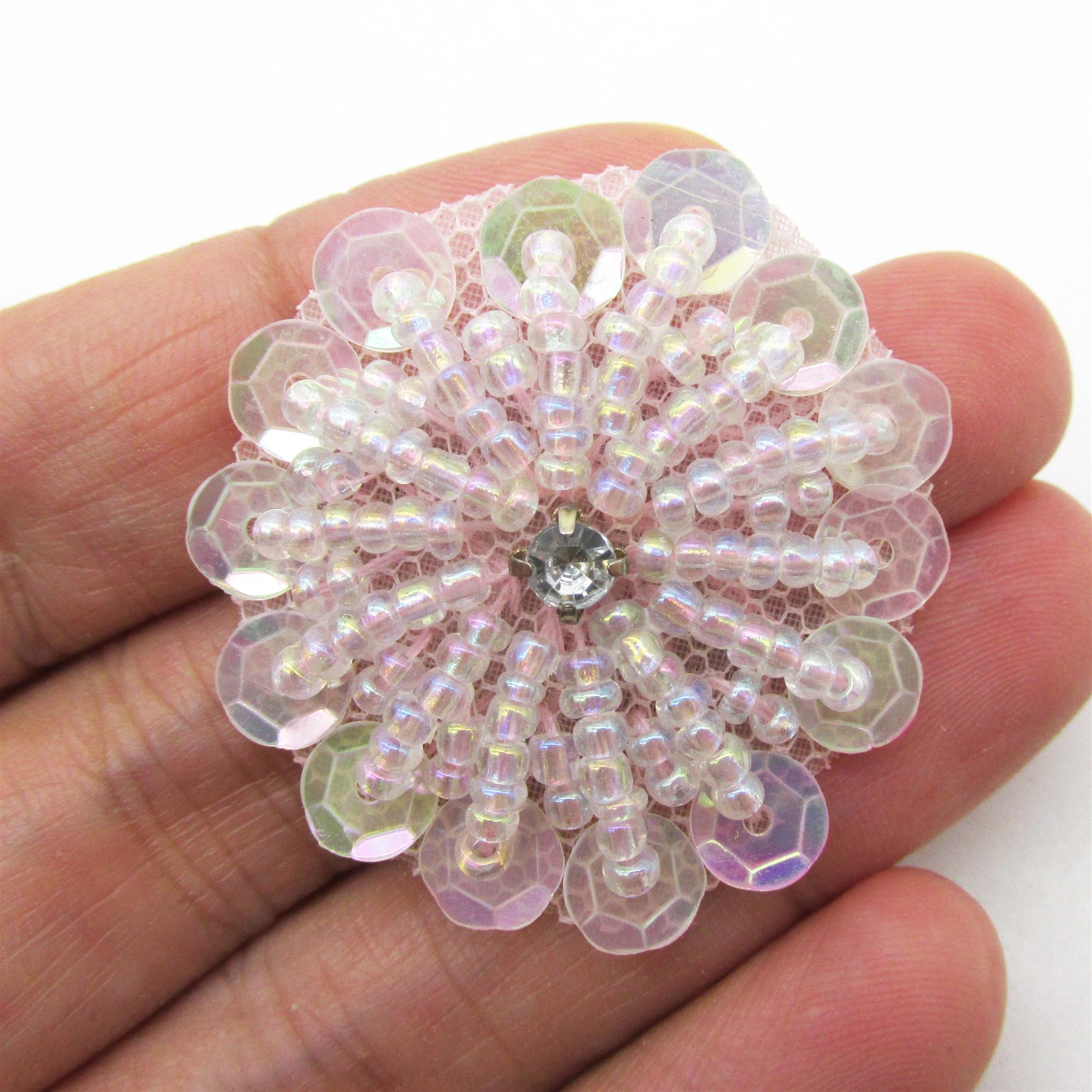 Beaded Sequin Flower Motif With Diamante 30mm 7741