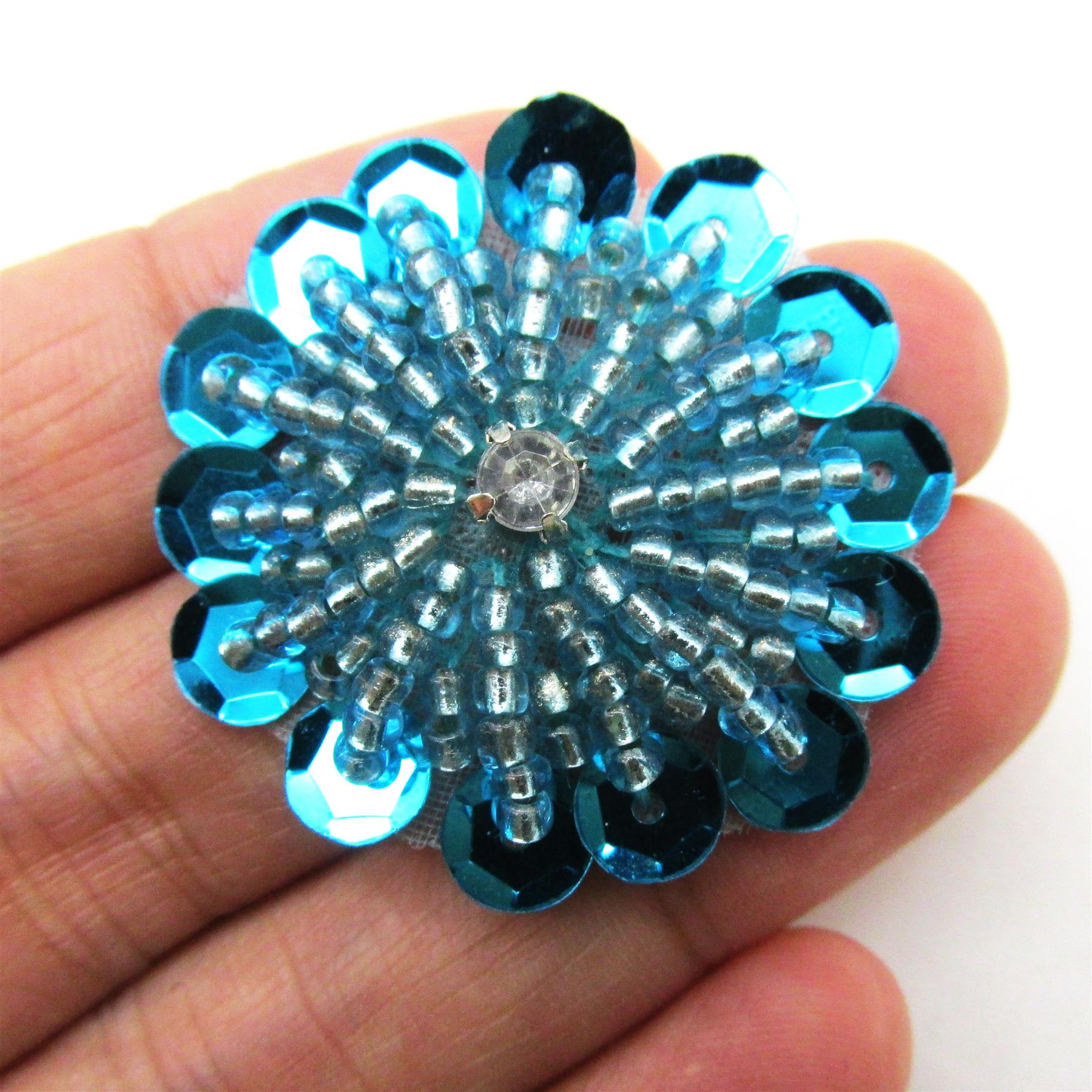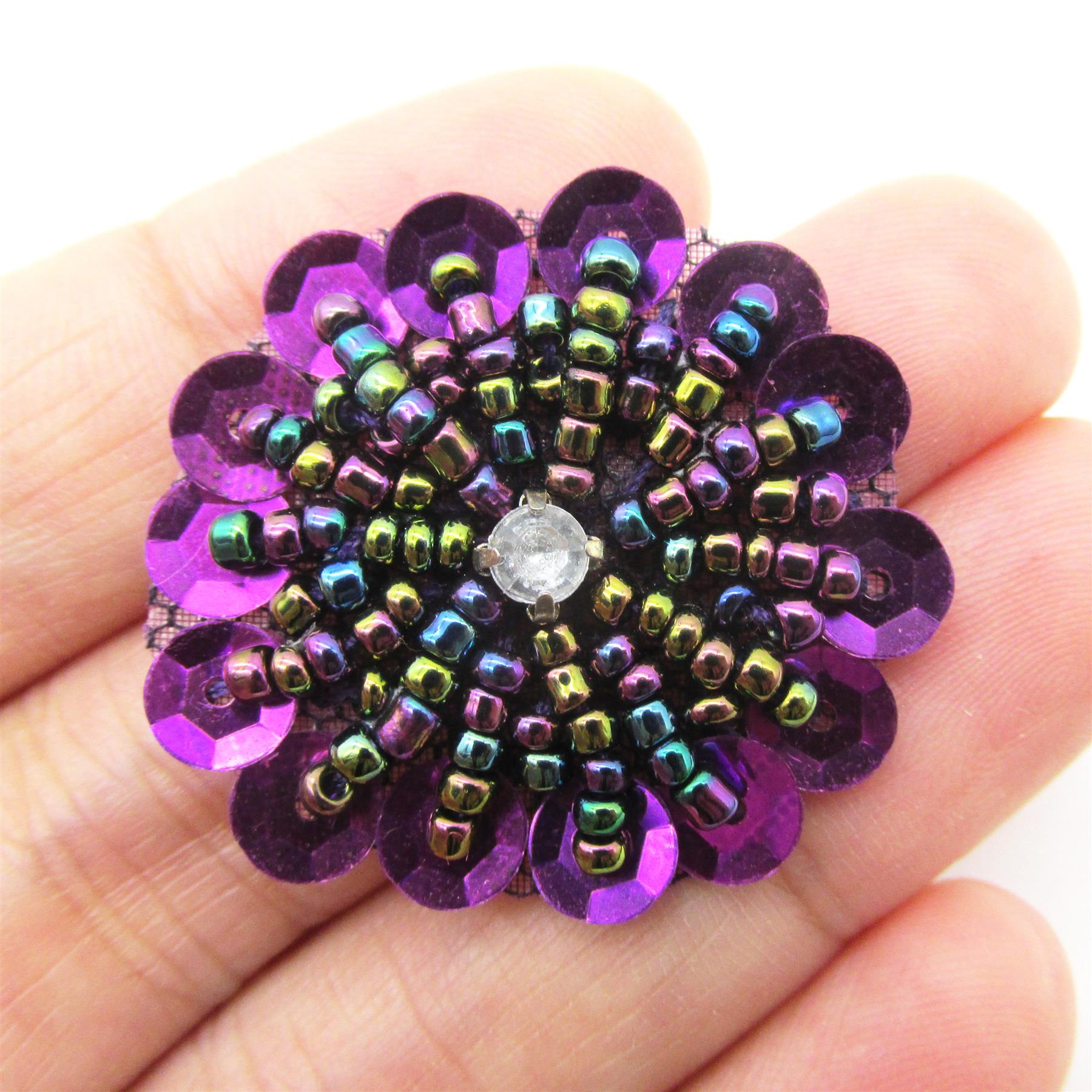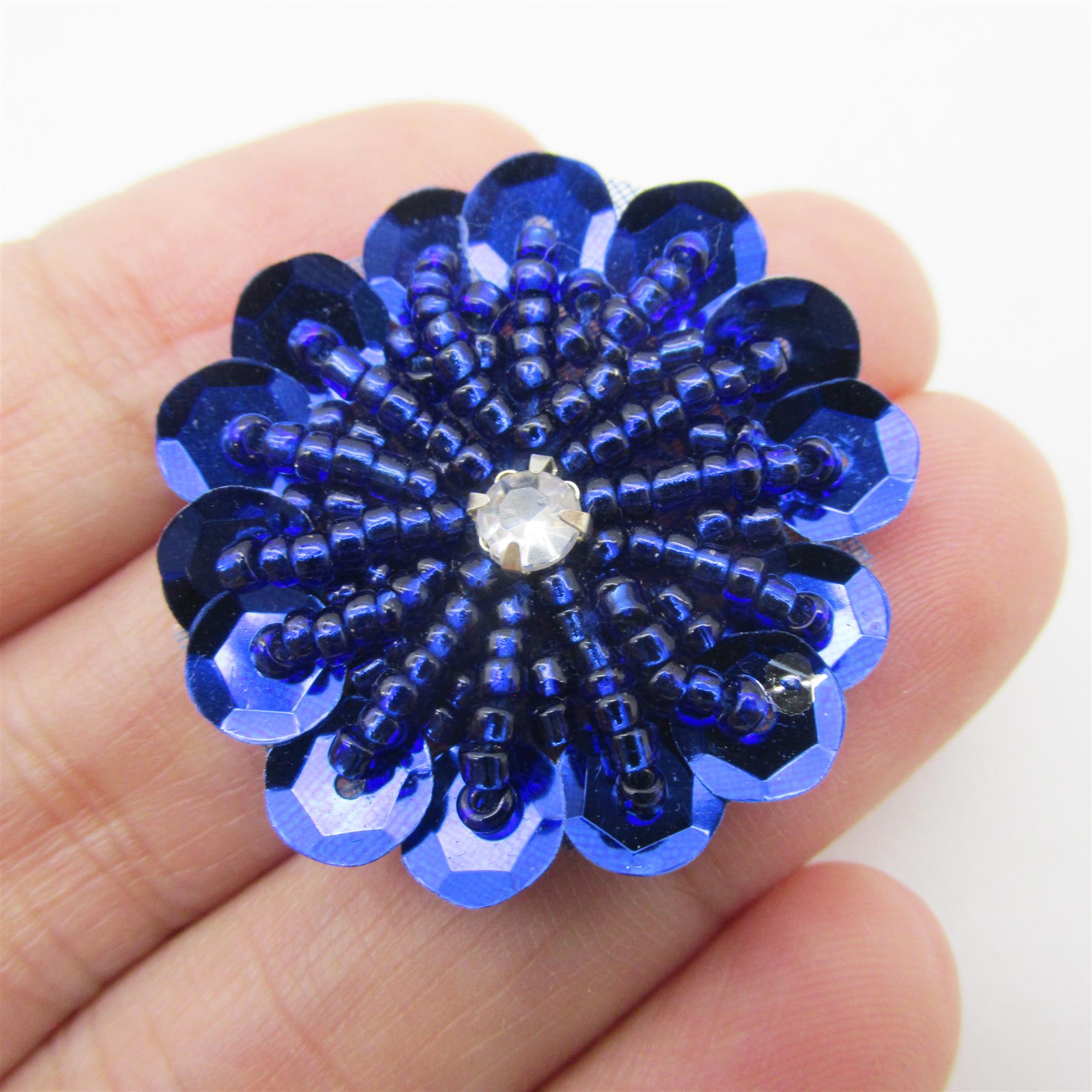 Beaded Sequin Flower Motif With Diamante 30mm 7741
