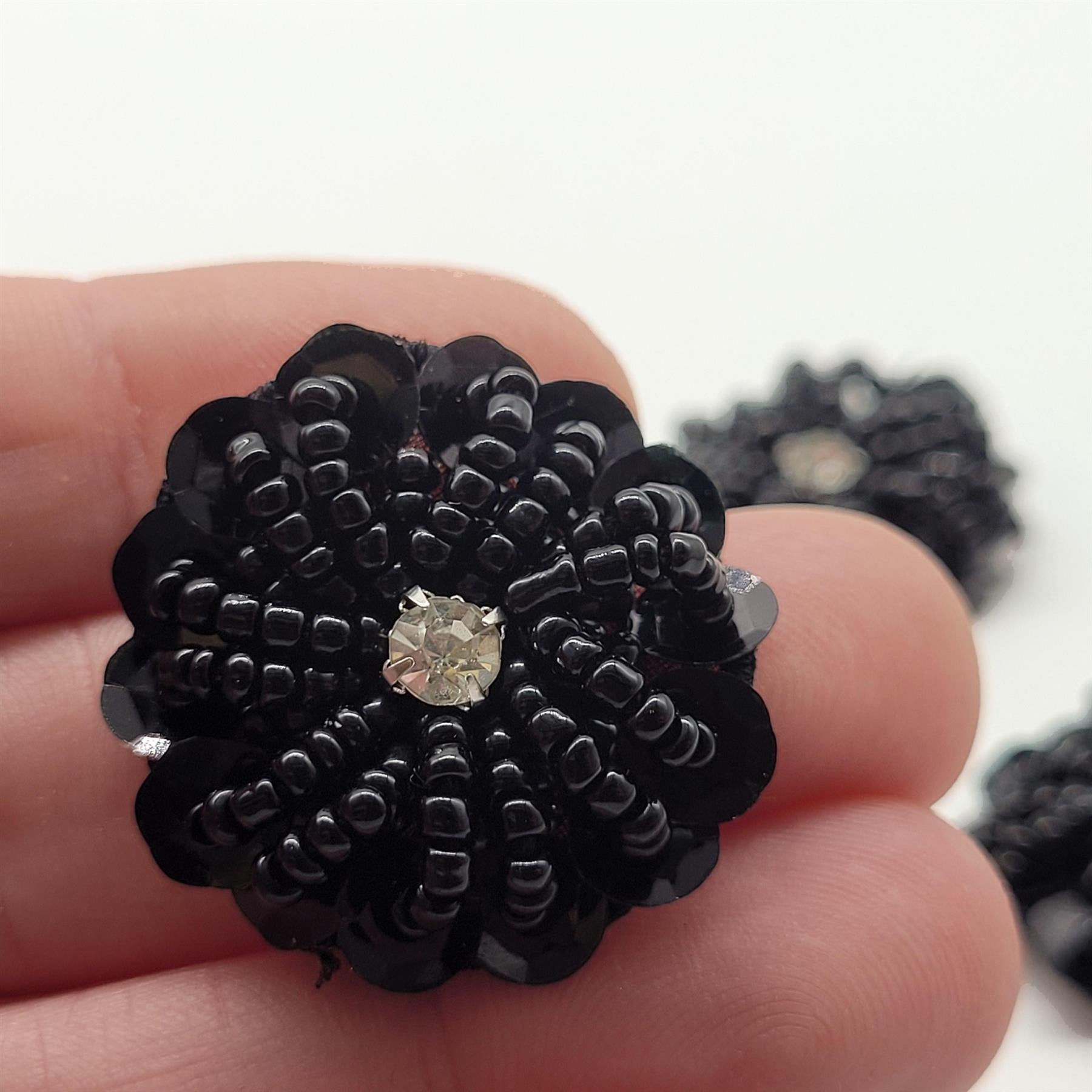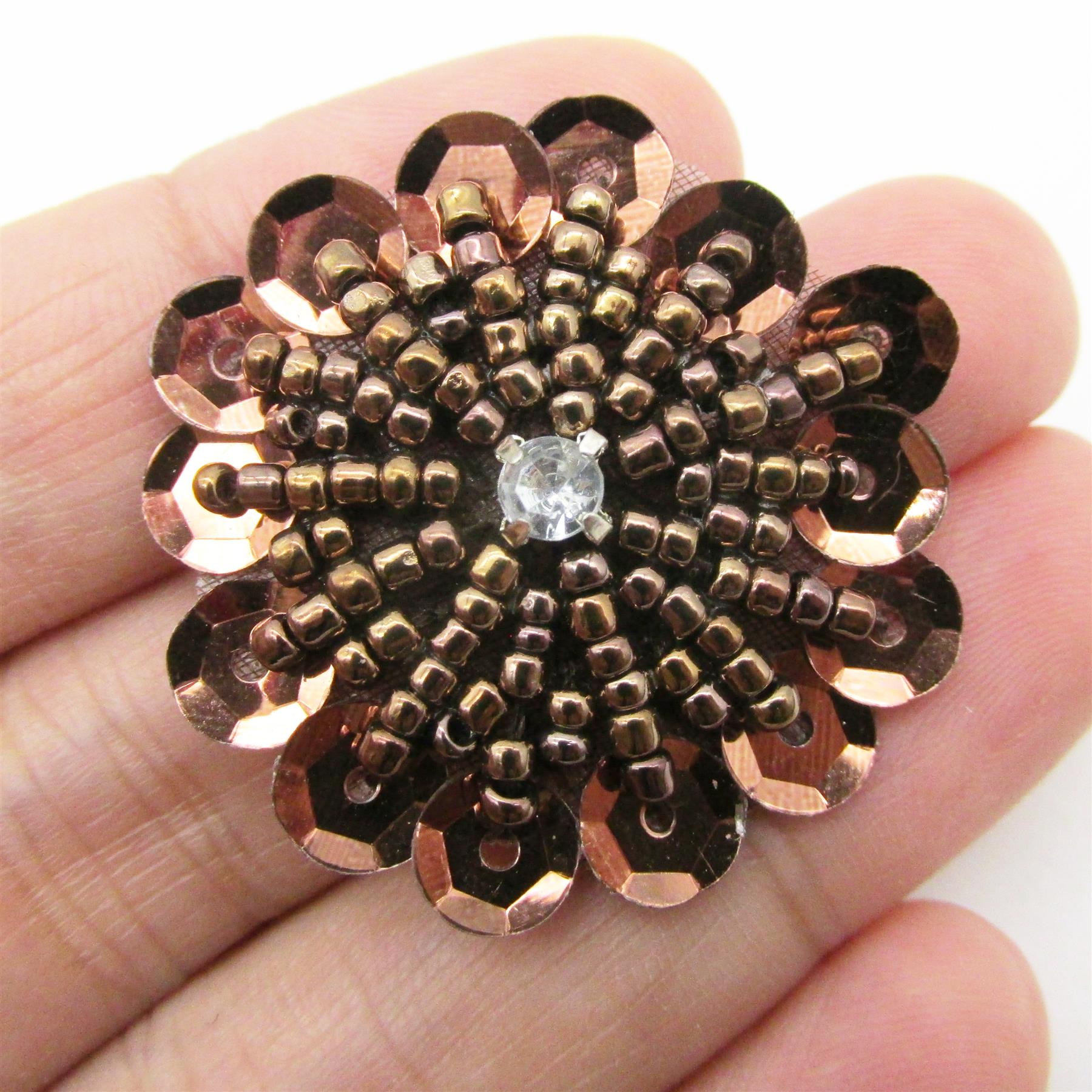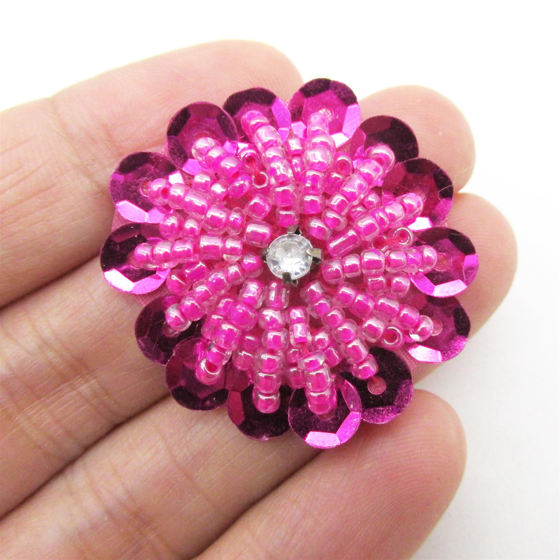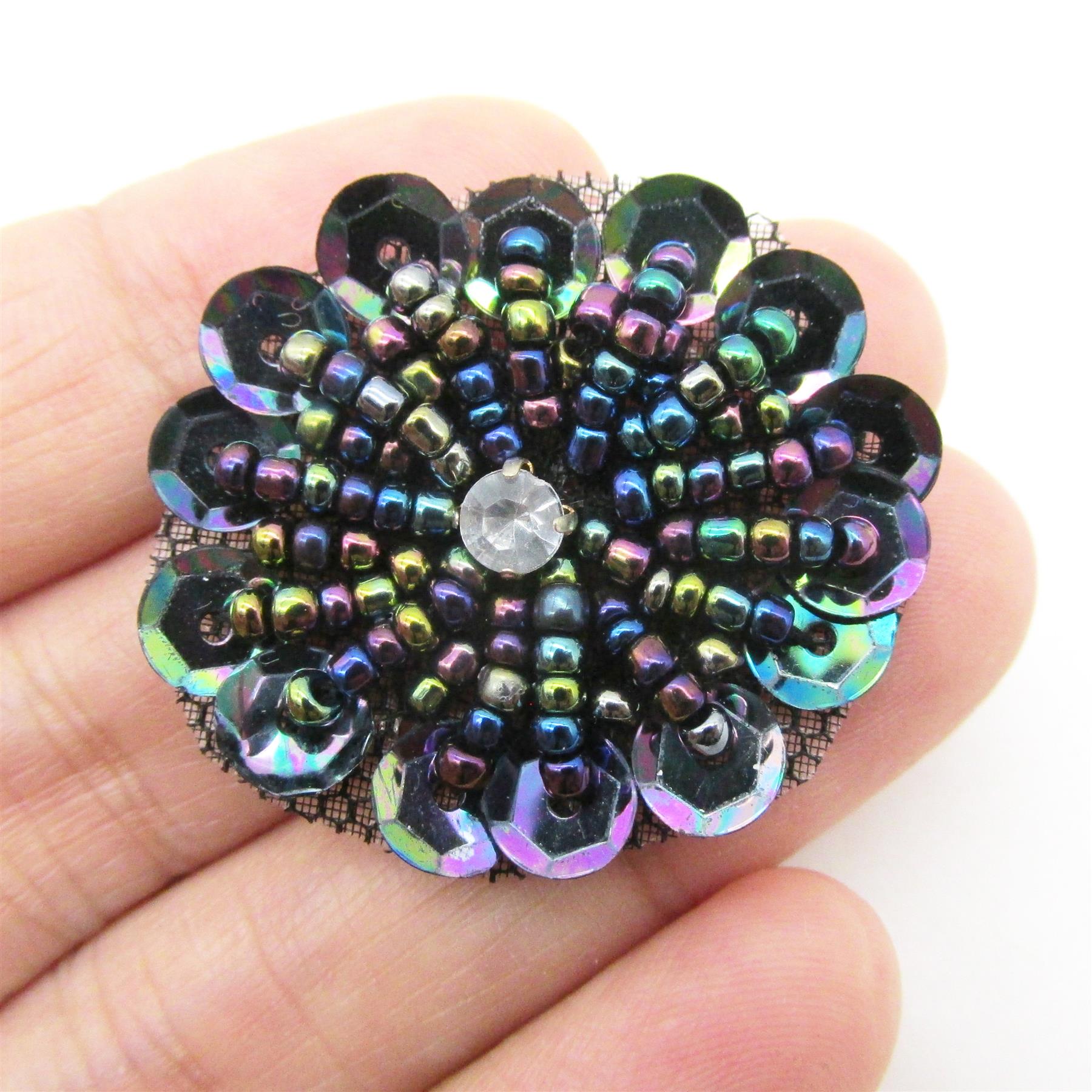 Beaded Sequin Flower Motif With Diamante 30mm 7741