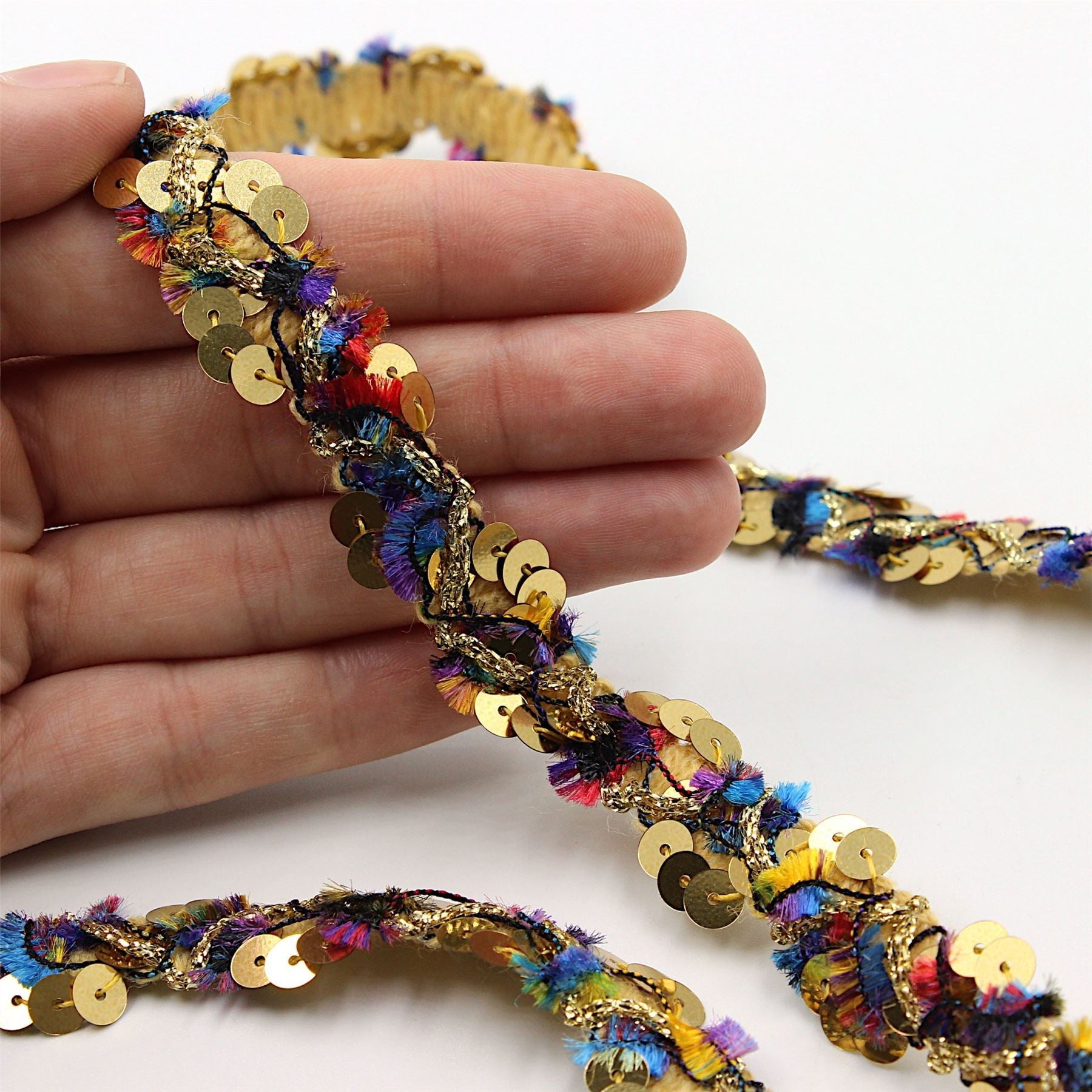 Multi Coloured Sequin Textured Braid 18mm 8591
