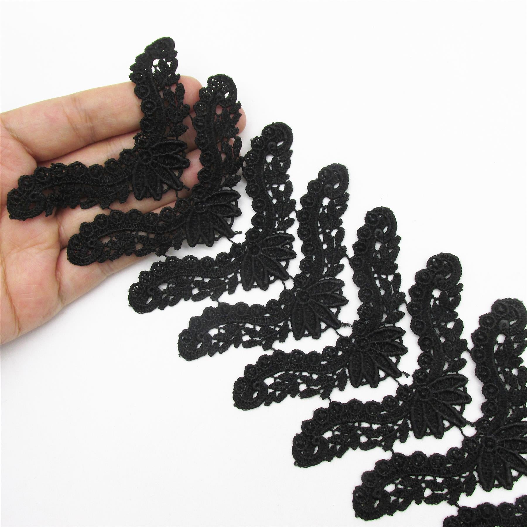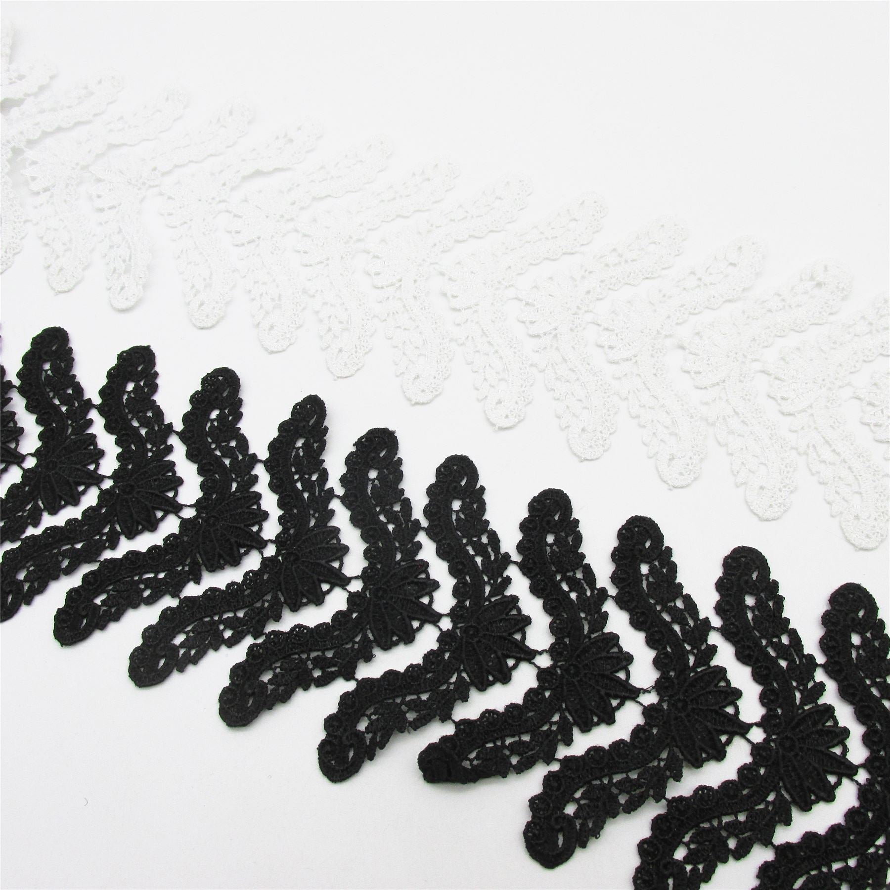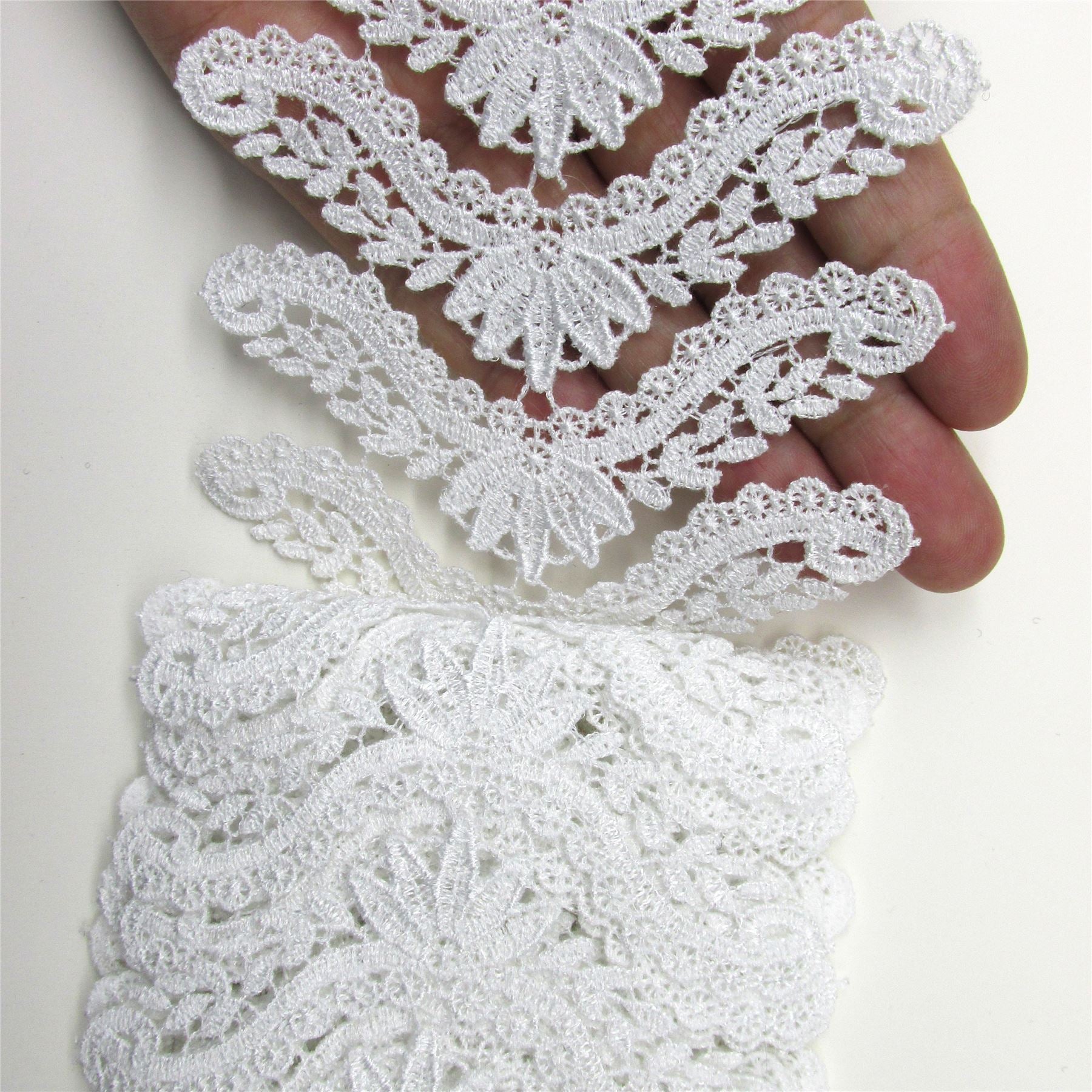 Beautiful V-shaped lace motifs supplied in a continuous strip of 10 connected pieces.