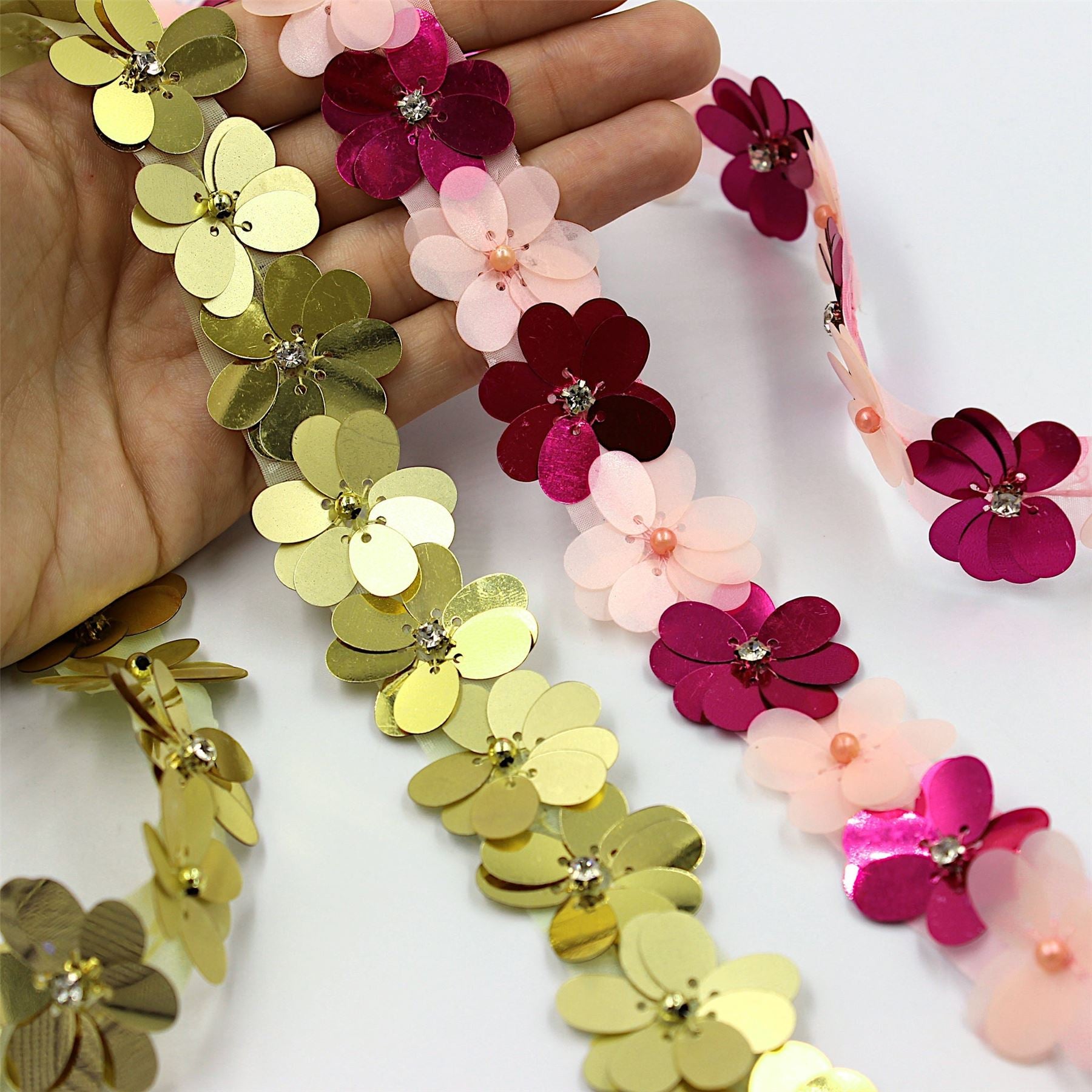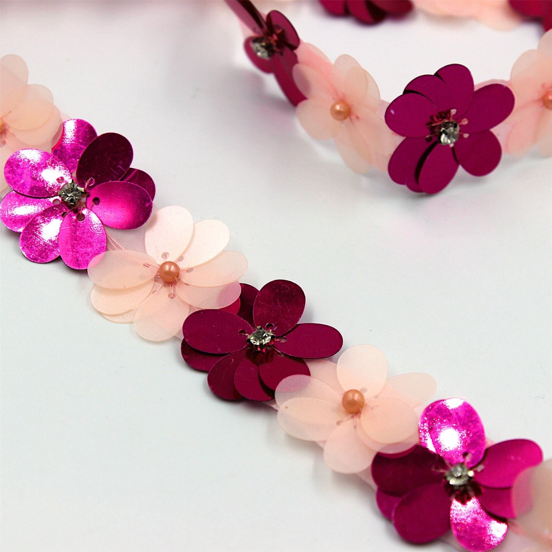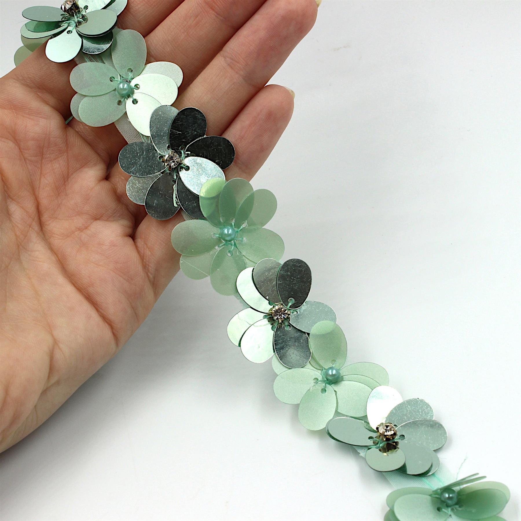 Large Sequin Flower Braid With Diamante 30mm 9293