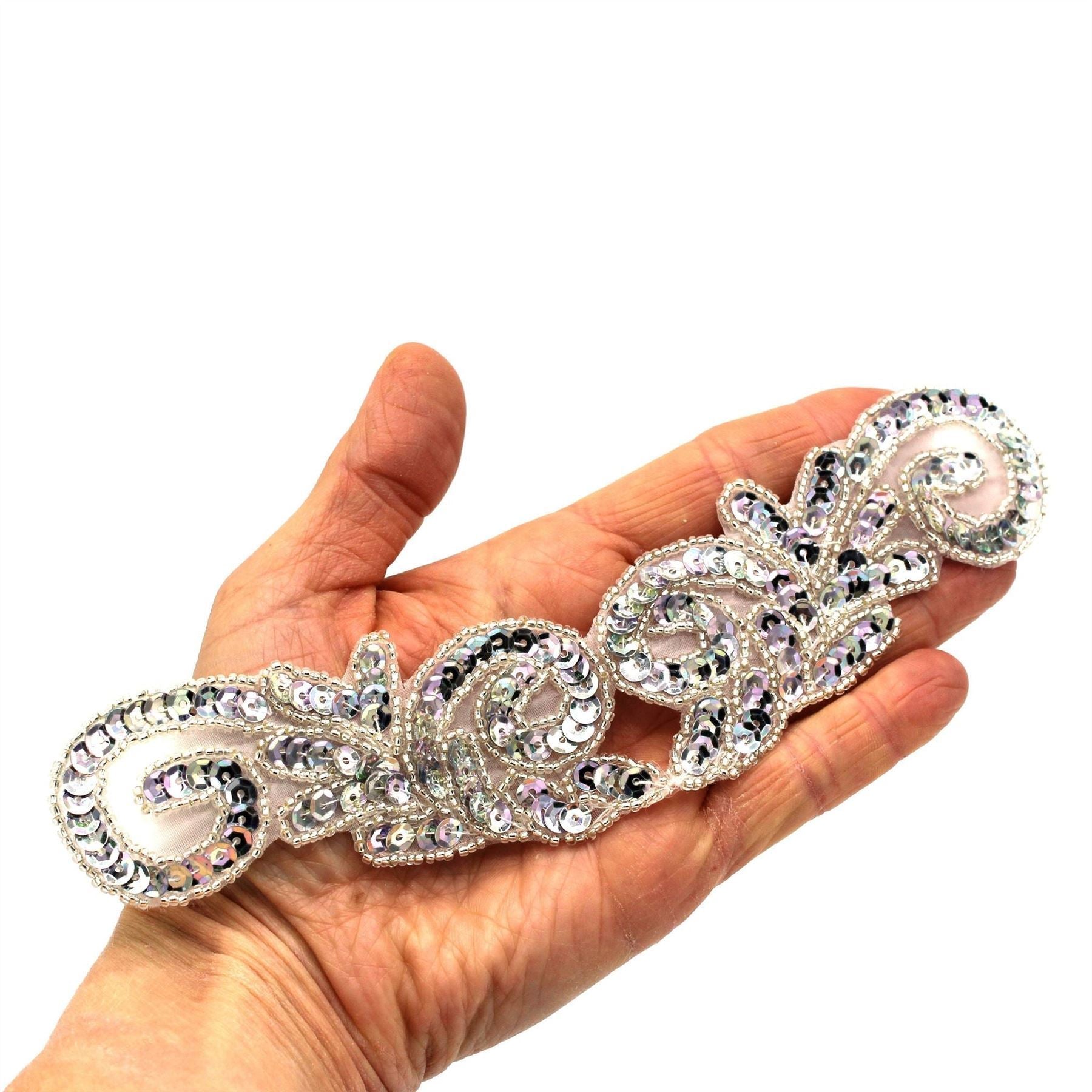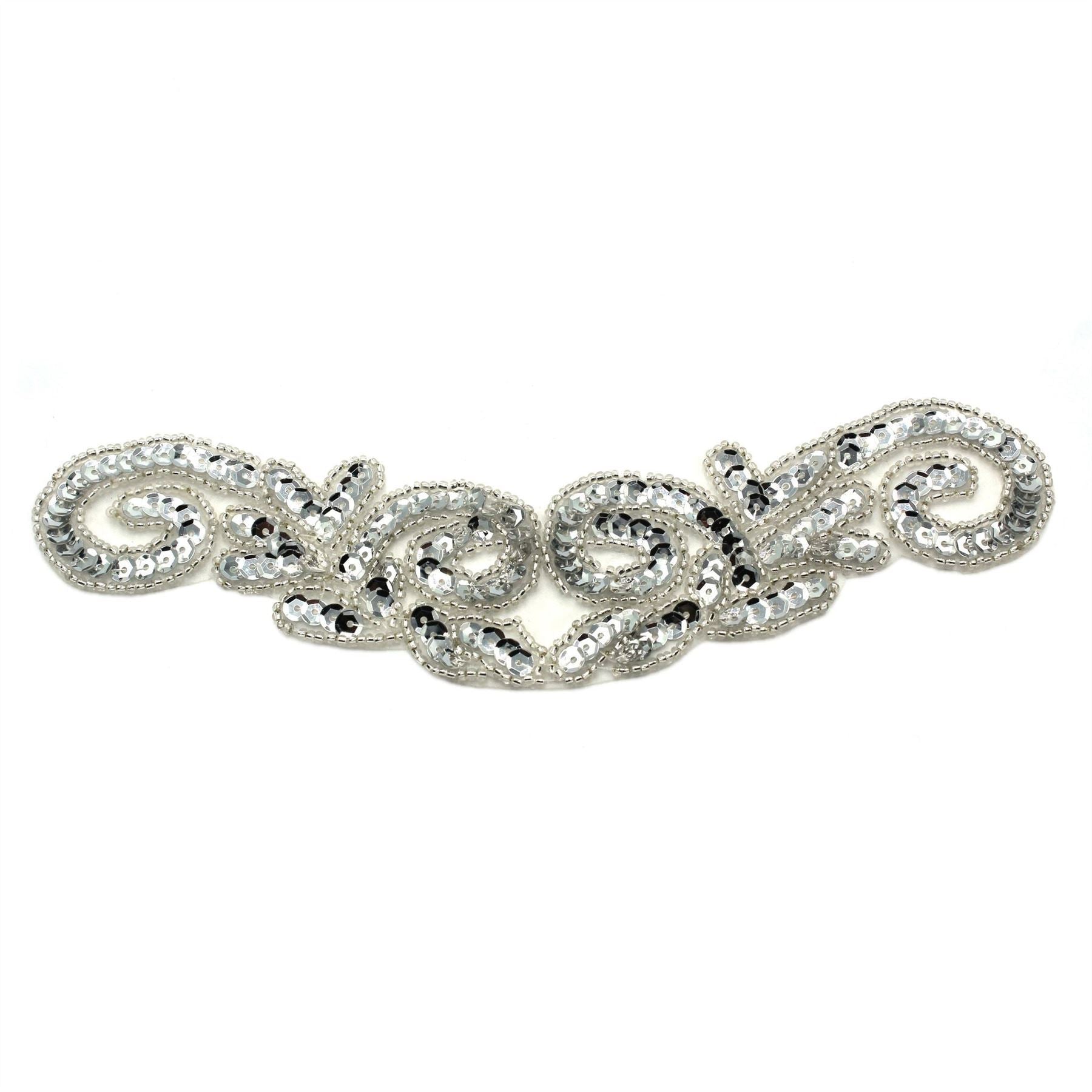 Scroll Shaped Sequin Motif Appliques 39mm 9326
