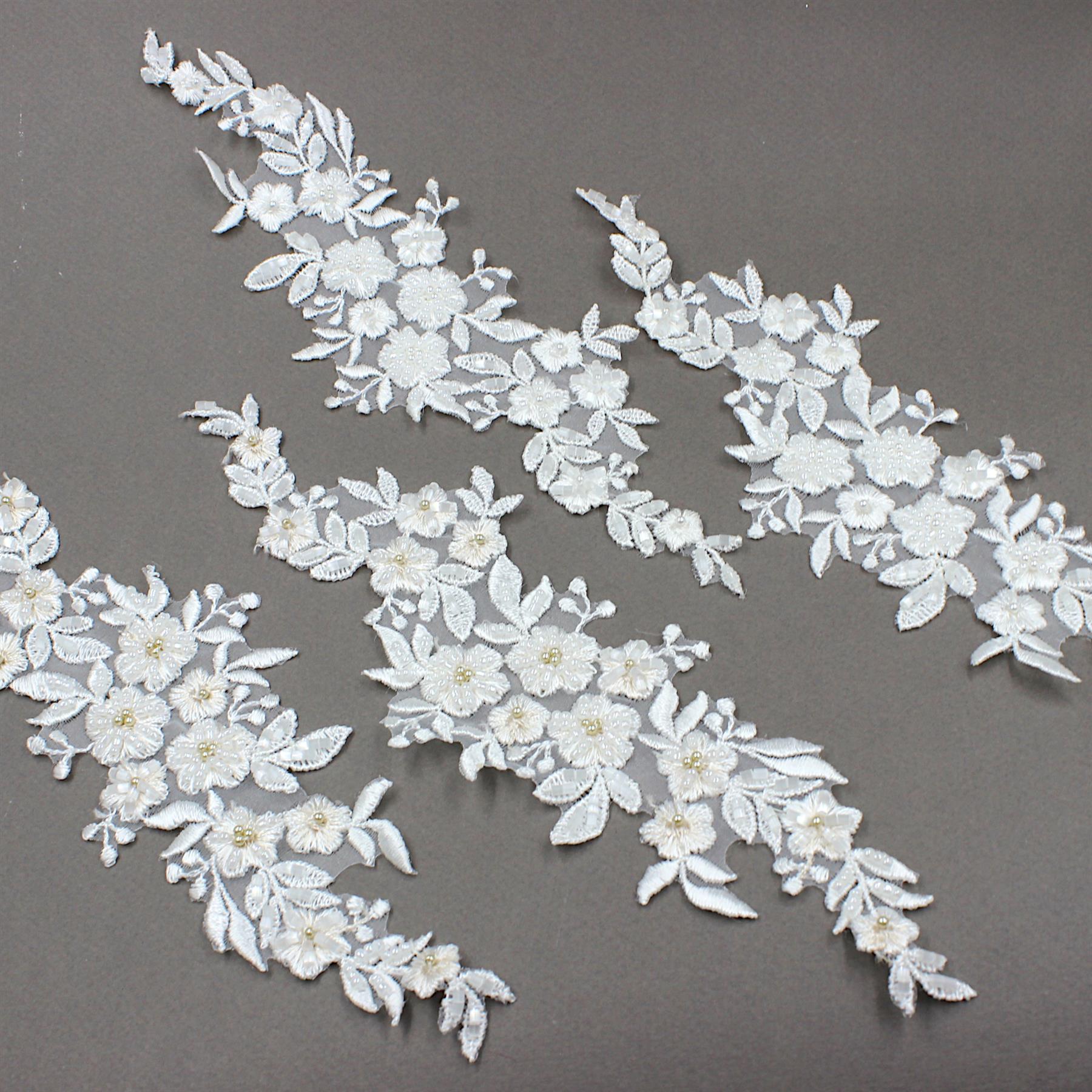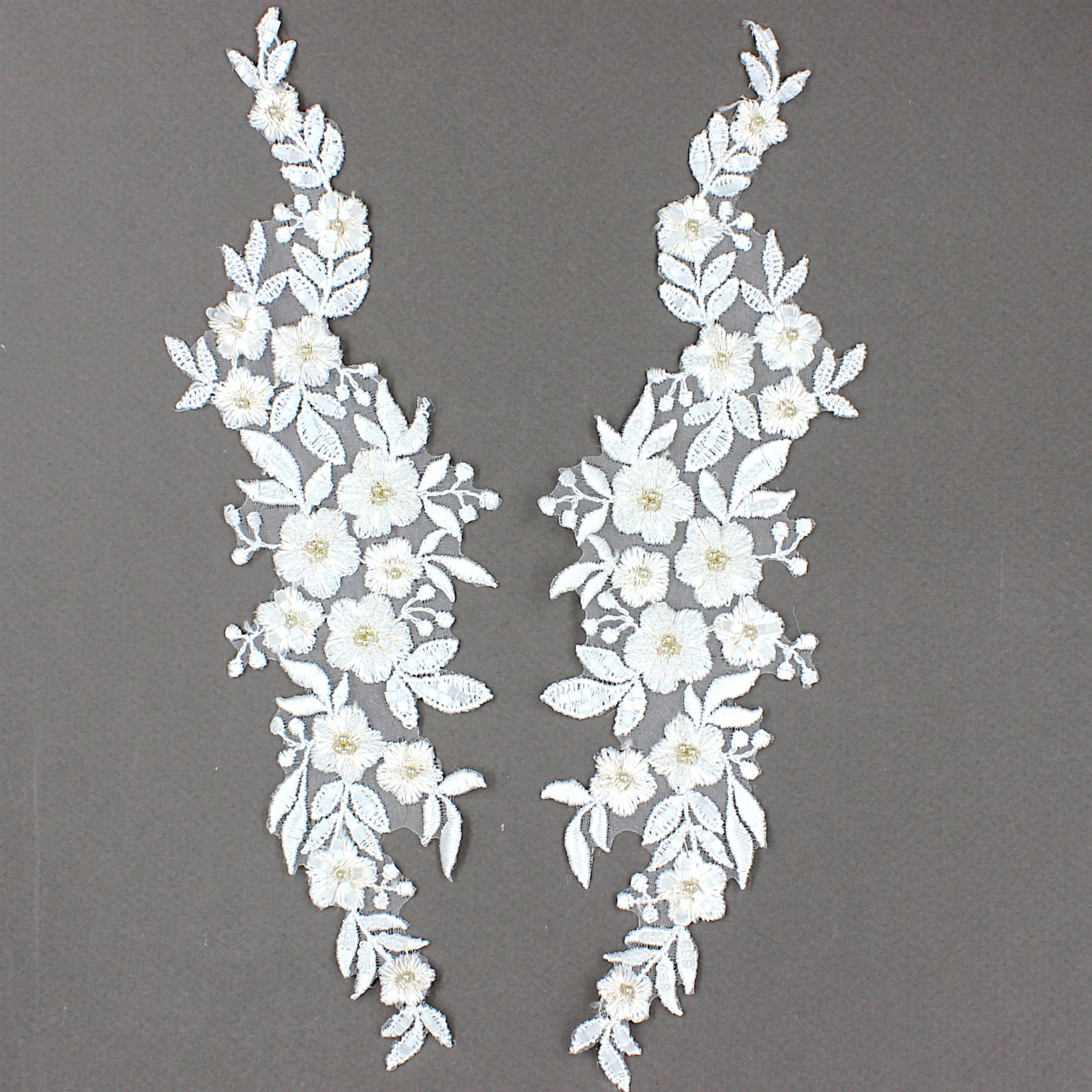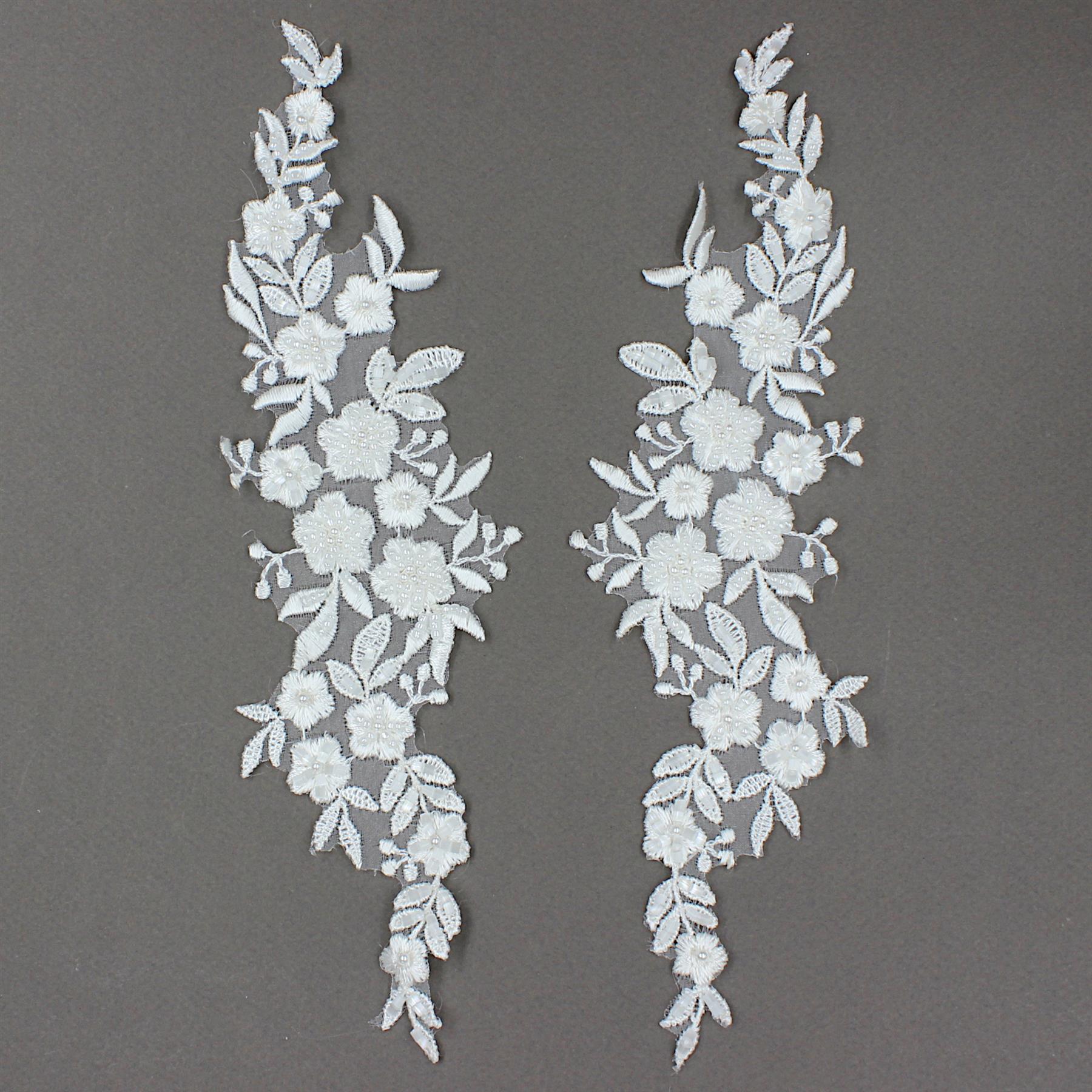 1. Sold as a mirror-image pair. 2. Leaf and floral design. 3. Size approximately 23cm x 6.5cm 4. Perfect for Bridalwear, Millinery and Costumes.